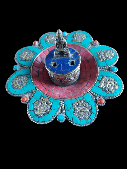 Vintage Tibetan incense burner with Buddha