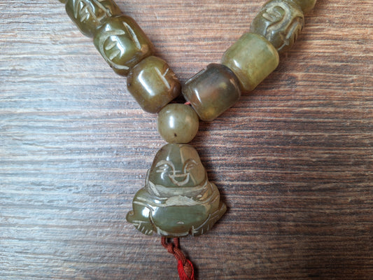 Vintage Tibetan jade buddha mala bracelet #1