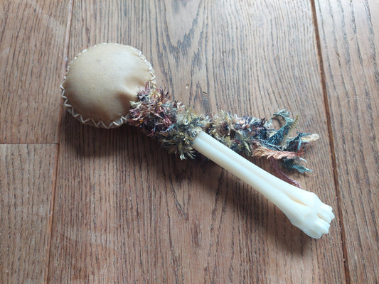Goat hide and roe deer leg bone rattle