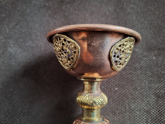 Tibetan red copper chula ghee lamp 14,5 centimeters