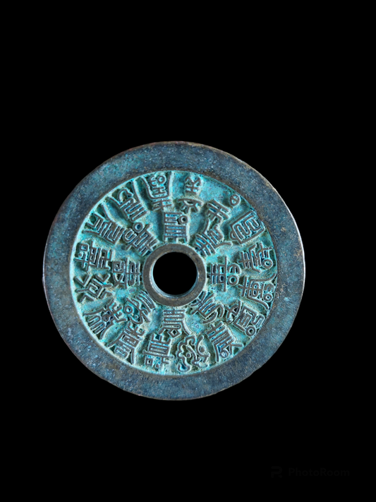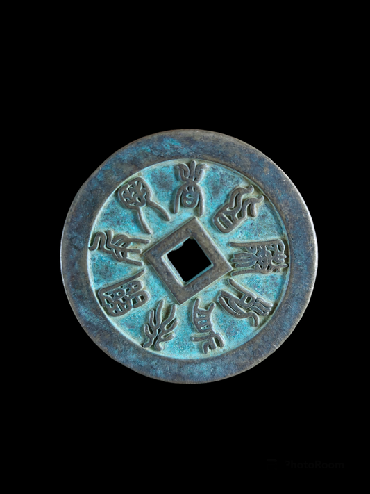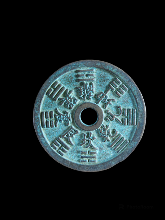 Vintage bronze numismatic charm Trigrams and Zodiac