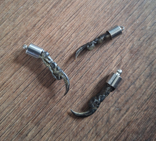 In this section you can find amulets and jewelry made with animal materials, such as bones, claws and teeth. All handmade by Chyltys Kam.