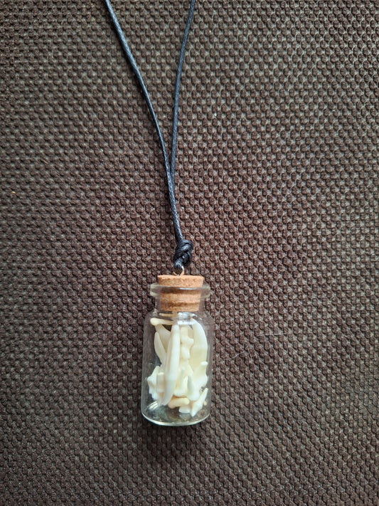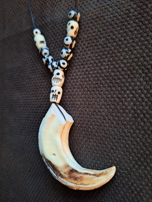 In this section you can find amulets and jewelry made with animal materials, such as bones, claws and teeth. All handmade by Chyltys Kam.