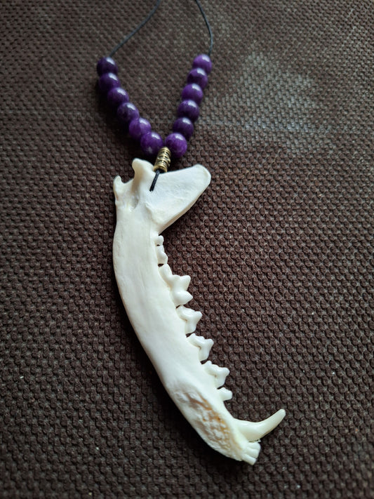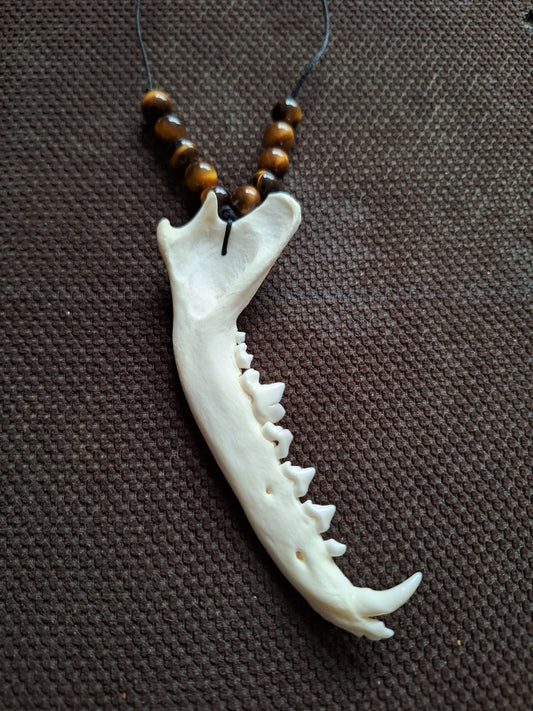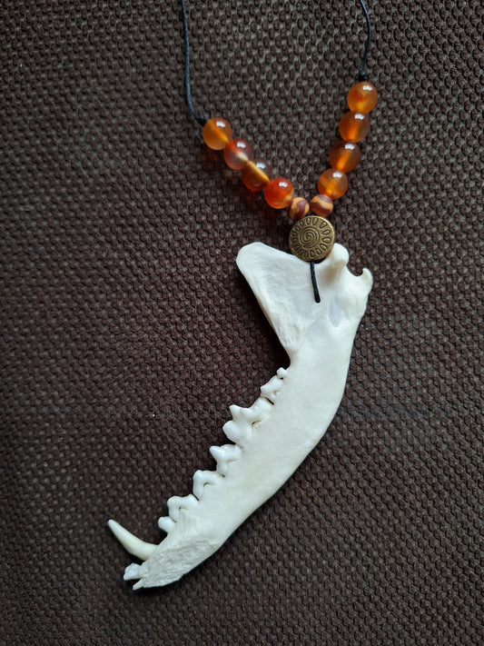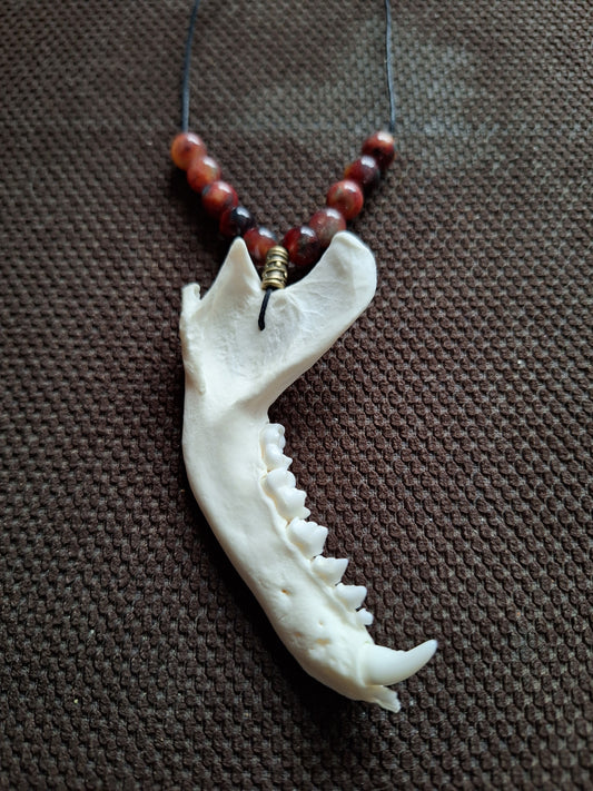 Racoon jaw bone and dragon's blood stone amulet necklace #1