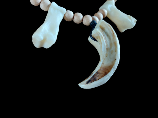 Wild boar tusk and foot bones amulet necklace