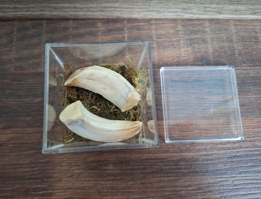 Wild boar upper jaw tusks in display cube
