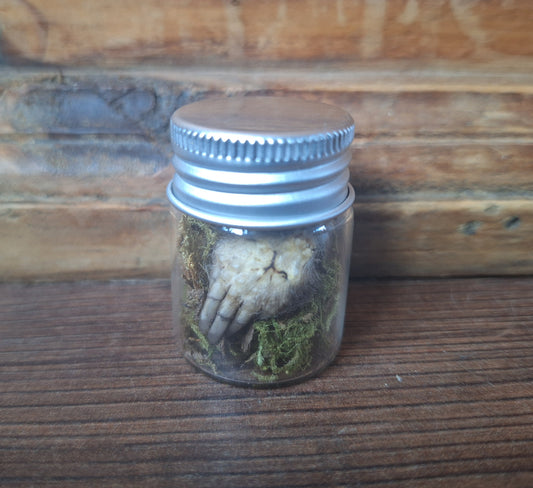 Mole paws in glass bottle