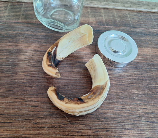 Wild boar upper jaw tusks in glass jar