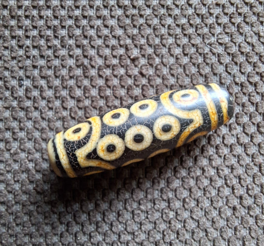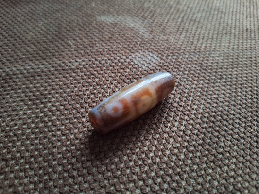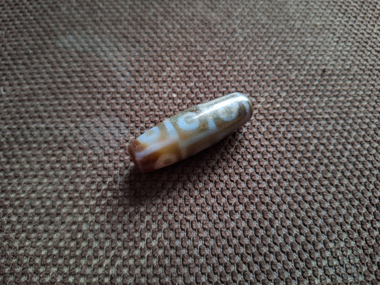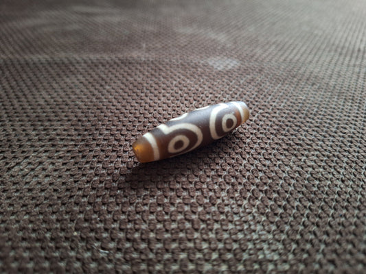 Dzi beads are amulets, mostly made from agate and often with symbols etched in them. They are said to be 'beetles from heaven', sent down by the gods to the human world to help, protect and bring prosperity. Every dzi bead is unique and has different meanings depending on the symbols upon it.