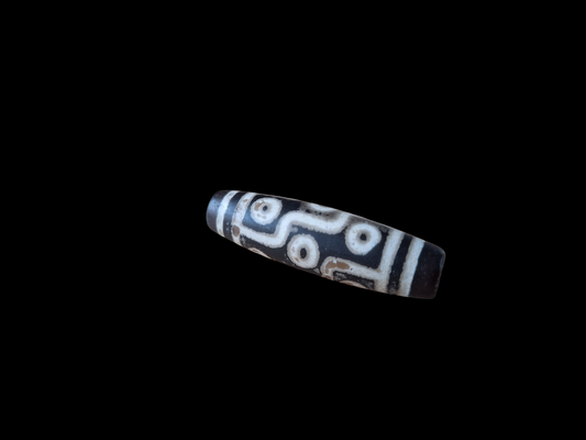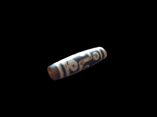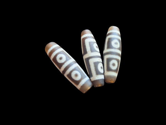 Dzi beads are amulets, mostly made from agate and often with symbols etched in them. They are said to be 'beetles from heaven', sent down by the gods to the human world to help, protect and bring prosperity. Every dzi bead is unique and has different meanings depending on the symbols upon it.