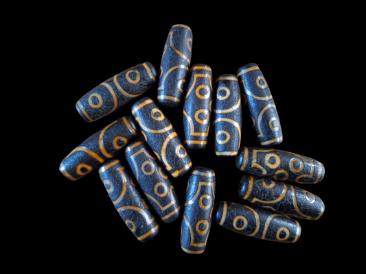 Here in our shop you can find both the older and rarer dzi beads as the more common ones. Both vintage ones with a rustique appearance due to previous usage, as brand new ones, waiting for you to be their first owner.