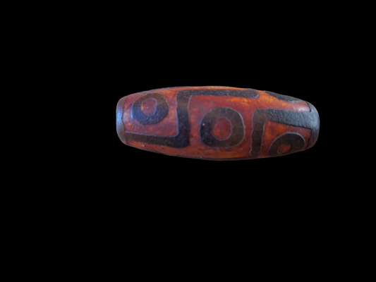 Dzi beads are amulets, mostly made from agate and often with symbols etched in them. They are said to be 'beetles from heaven', sent down by the gods to the human world to help, protect and bring prosperity. Every dzi bead is unique and has different meanings depending on the symbols upon it.