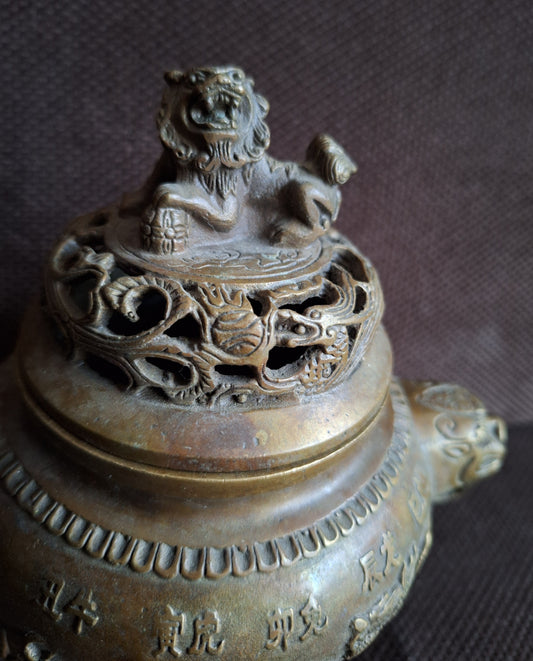 Vintage bronze incense burner Guardian Lion and Zodiac