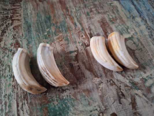When working with the spirit of power animals, it is often very nice to honor your spiritual connection with that animal with a physical representation. Wearing a claw or tooth from that animal as a personal amulet on a cord around your neck, is one of the simplest and yet most powerful amulets. Such an amulet can be worn on a daily basis or, for example, specifically during ritual work. The teeth and claws in our shop often have a little hole already drilled in them, so they are ready to hang on a cord or attach to your ritual costume or spirit doll.
