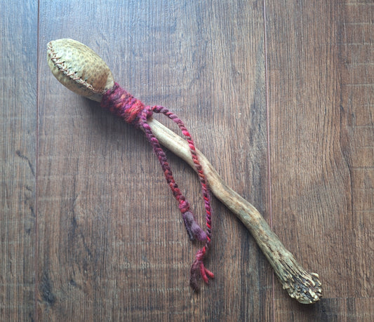 The use of rattles for ritual and ceremonial purposes can be found in different spiritual traditions, dating back for hundreds if not thousands of years. The sounds produced by a rattle when shaken in a steady, monotonous rhythm can support in calming down the busy mind and inducing a light trance state, in which communication with the spirit world is more easy. The rattle can also be used as an active ritual tool, for example for calling the spirits into the ritual space or for cleansing, balancing or blessing purposes during healing sessions. The more you work together with a rattle, the more you will notice (as with all in shamanism); each rattle is the house of an individual spirit, with its own specific dynamics and energetics. Thus it can certainly be possible to work with different rattles for different purposes.