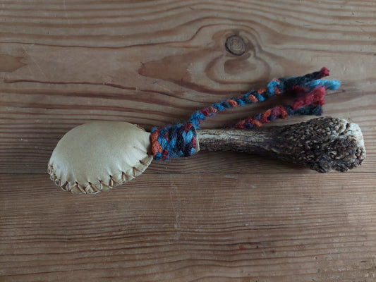 Goat hide and roe deer antler rattle