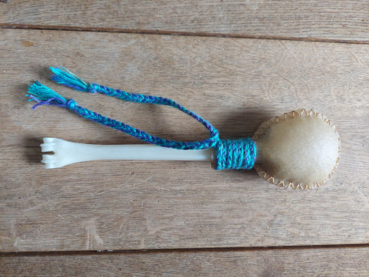 Goat hide and red deer leg bone rattle
