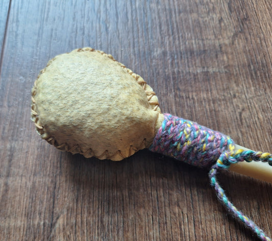 Sold outYak hide and roe deer antler rattle