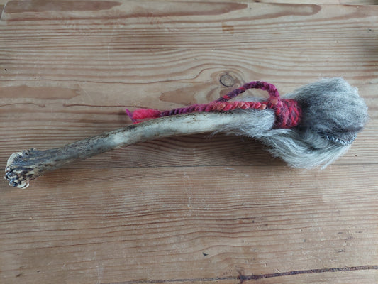 Rabbit fur and fallow deer antler rattle