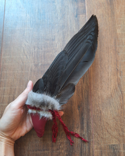 Bone feather fan Crow