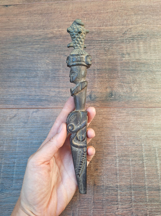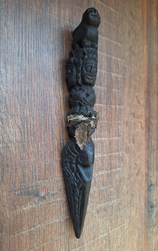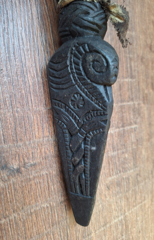 In the appearance of a phurba there’s a lot of symbolism to be seen. There are countless variations in the decorations, especially when it comes to the shamanic wooden ones, which are often carved with symbols very specific for the individual shaman. That being said, some symbolism and designs are quite common, some of which are mentioned here below.