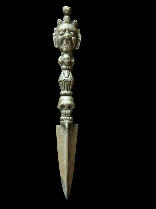 There are many ways in which the phurba is used and in some traditions it is considered to be one of the main ritual attributes. In many traditions it is used during ritual actions for its protective qualities, keeping the space safe from distortion by dark spirits and protecting the souls of the participants from getting lost. Also the phurba can be used as an attribute for healing, using it to expel evil spirits and entities from the human body and as a tool for directing energy and giving blessings.