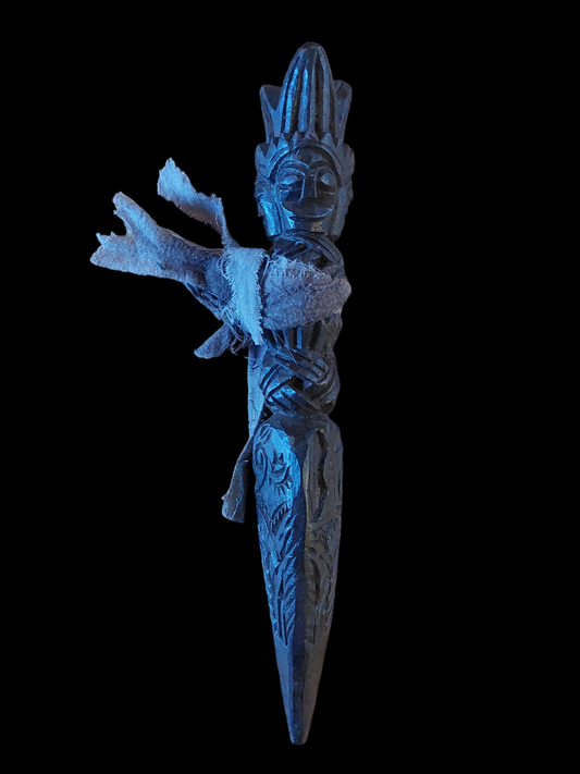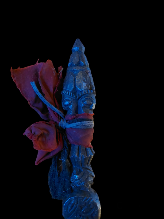 The blade often shows depictions of intertwined naga spirits, reminiscent of the Caduceus staff and indeed implying the medicinal work that can be done with a phurba. The naga’s are often depicted going up the blade, symbolizing the bringing of fertility and abundance, and sometimes going down the blade, symbolizing the releasing of heavy energies.