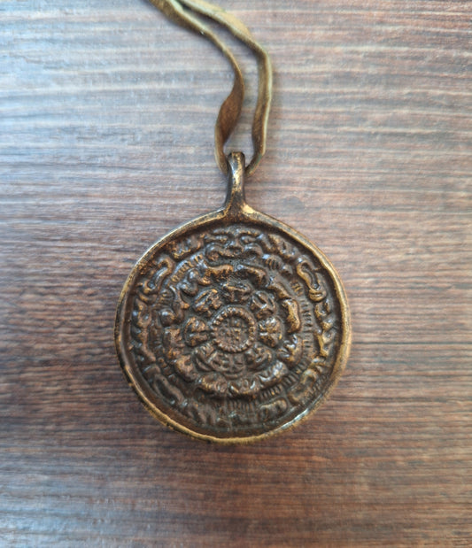 Vintage Tibetan brass mirror Dzogchen 47 millimeters