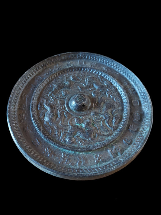 The use of metal mirrors as an indispensable attribute for people dealing with the worlds of the spirits on a regular base, such as professional shamans and priests, is already known for more than 6000 years. As such they have been found in excavations all over (especially) the Eurasian continent. From Siberia, Mongolia, Tibet and Nepal to China.