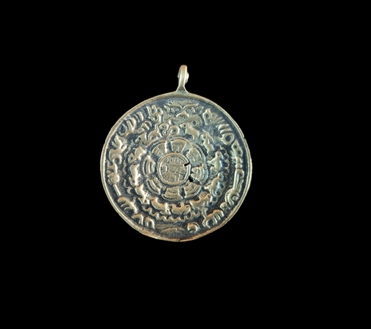 Vintage Nepalese melong Auspicious Symbols and Si Pa Ho 39 millimeters