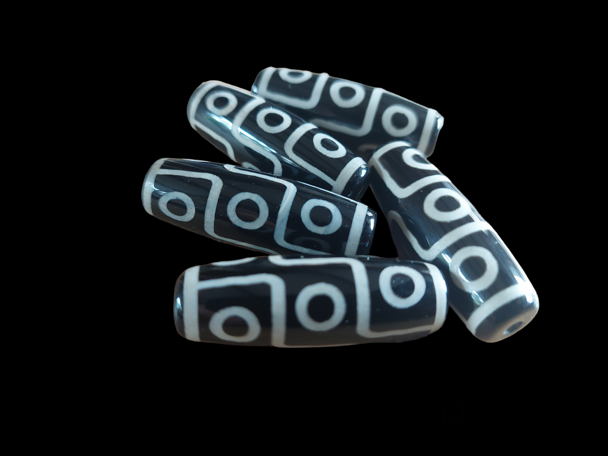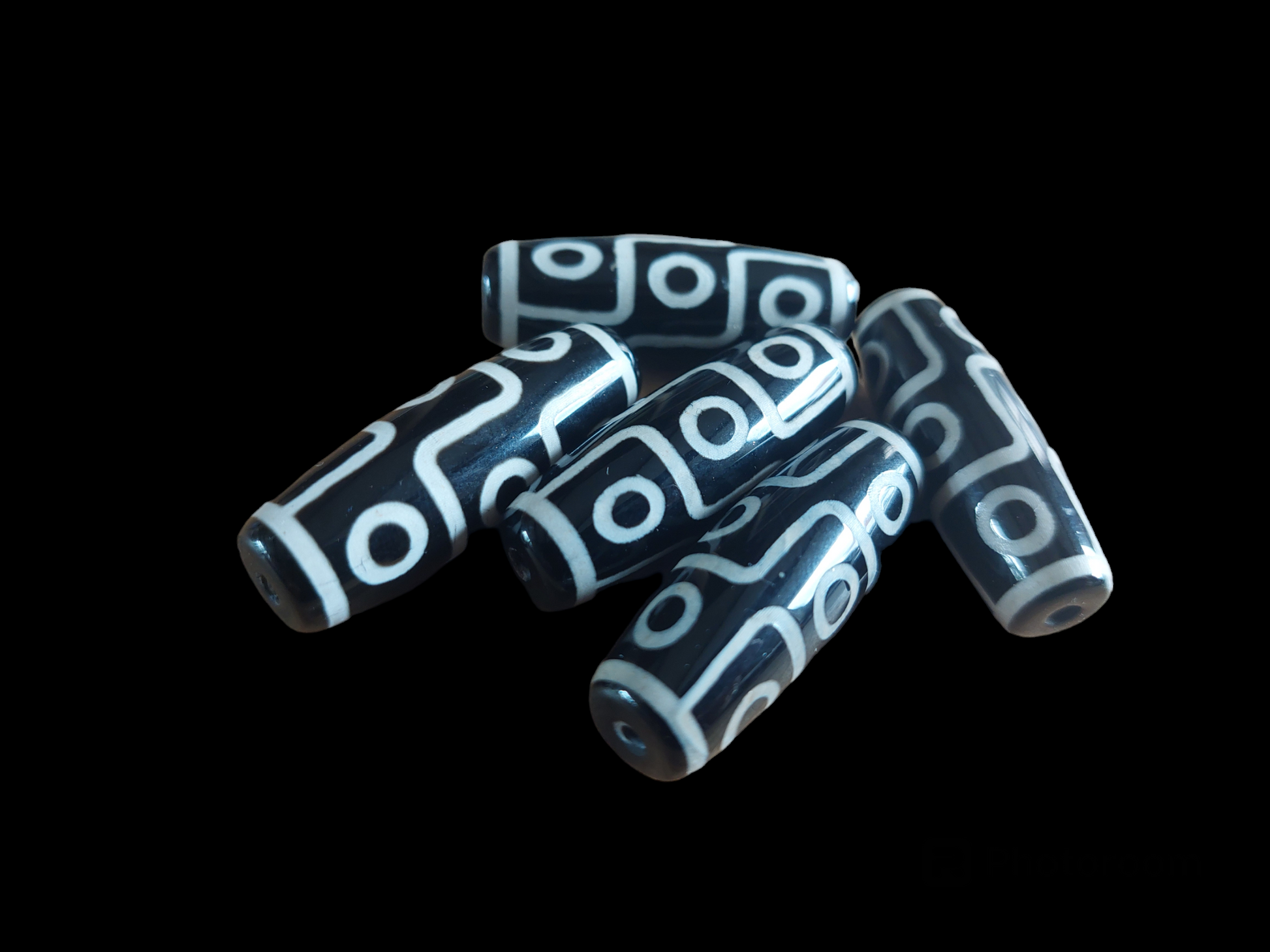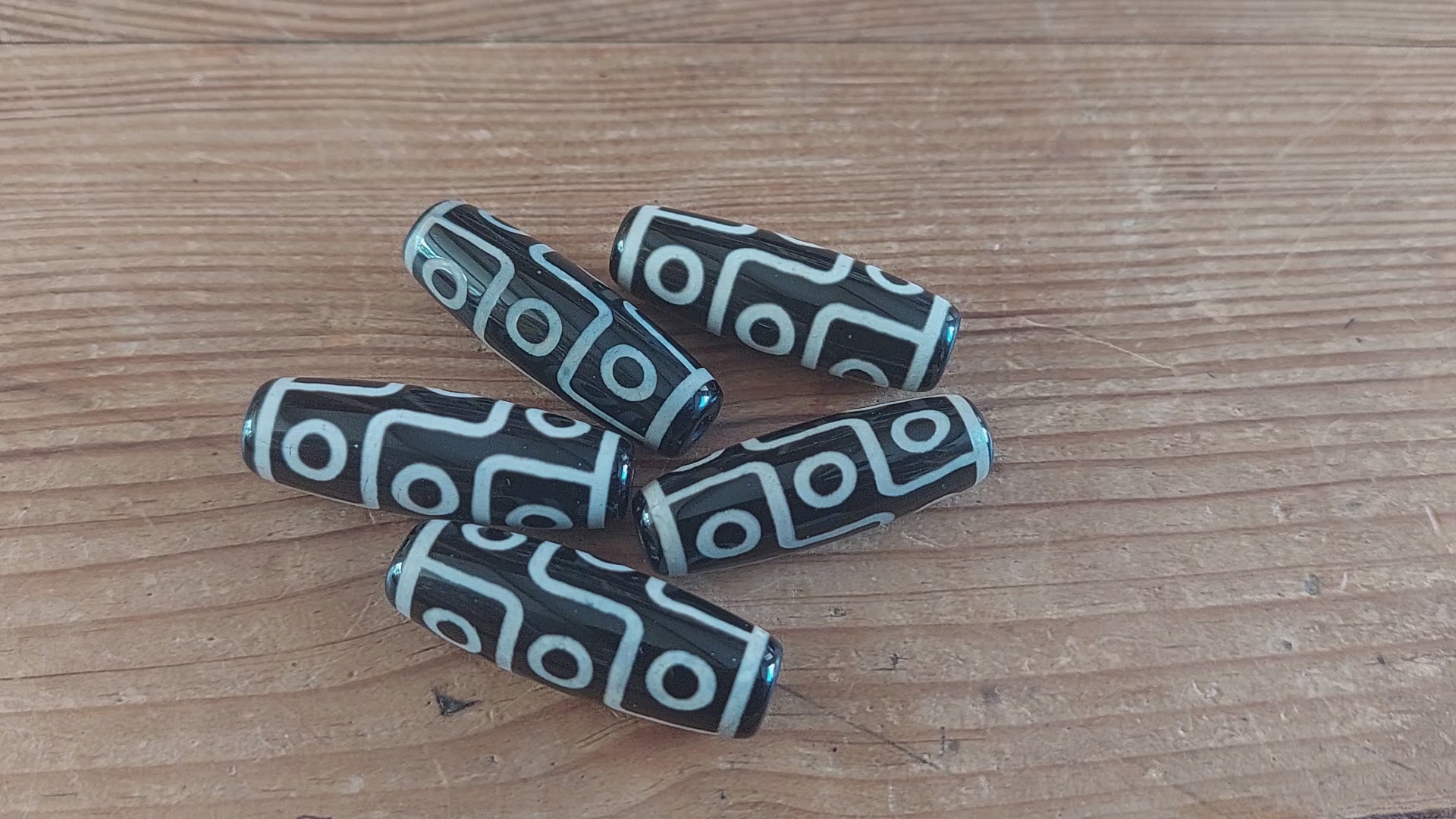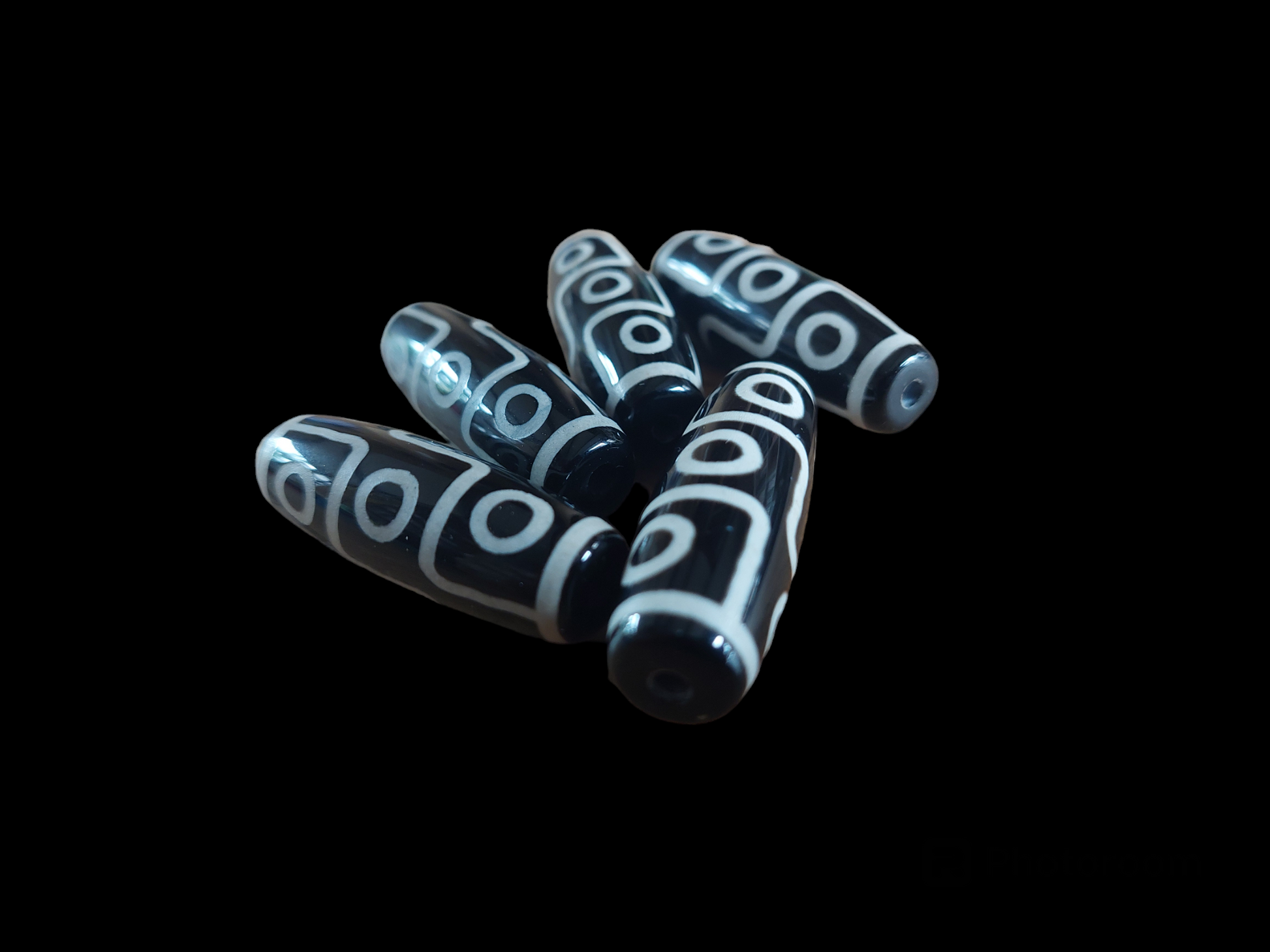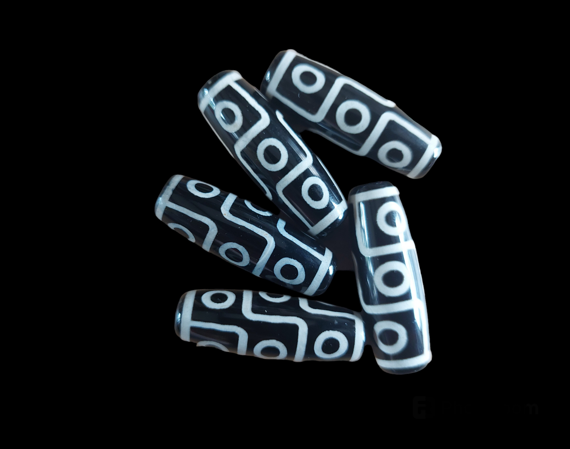 The 9 eyes are often associated with the essence of the nine planets in our solar system, symbolizing cosmic balance and the interconnectedness of all things. Wearing a 9 eye dzi is believed to align you with these celestial forces, attracting success in business, material wealth, a good reputation, social popularity and even fame on your path. Of course it does not grant you all this as by magic. Rather the 9 eye dzi works as a kind of amplifier, resonator and harmonizer for your own efforts and intentions, magnifying the fruits of your own labor. The 9 eye dzi bead also helps to give you clarity and insight into which step to take when, and where to put your attention too. It helps to prioritize your efforts.