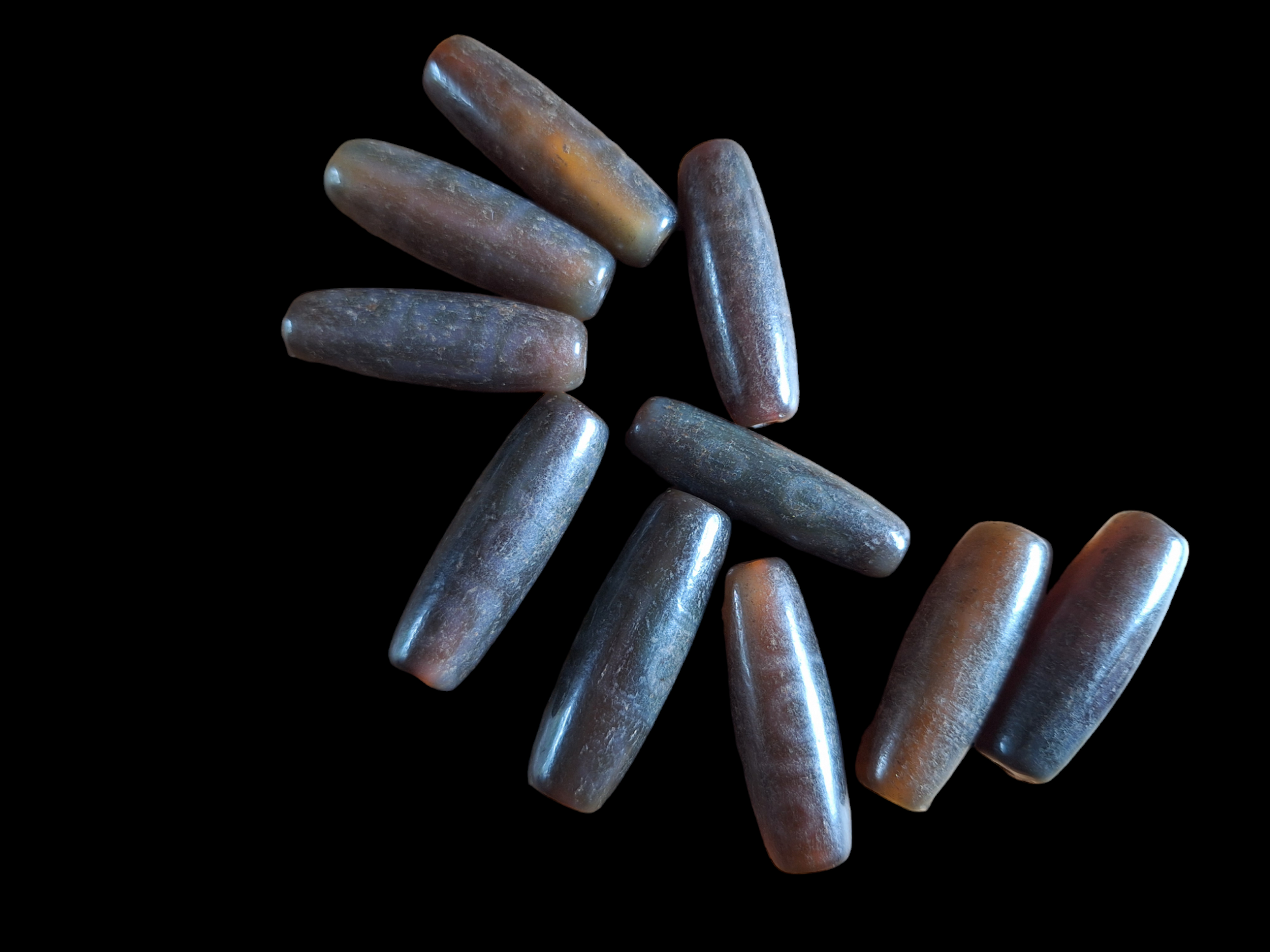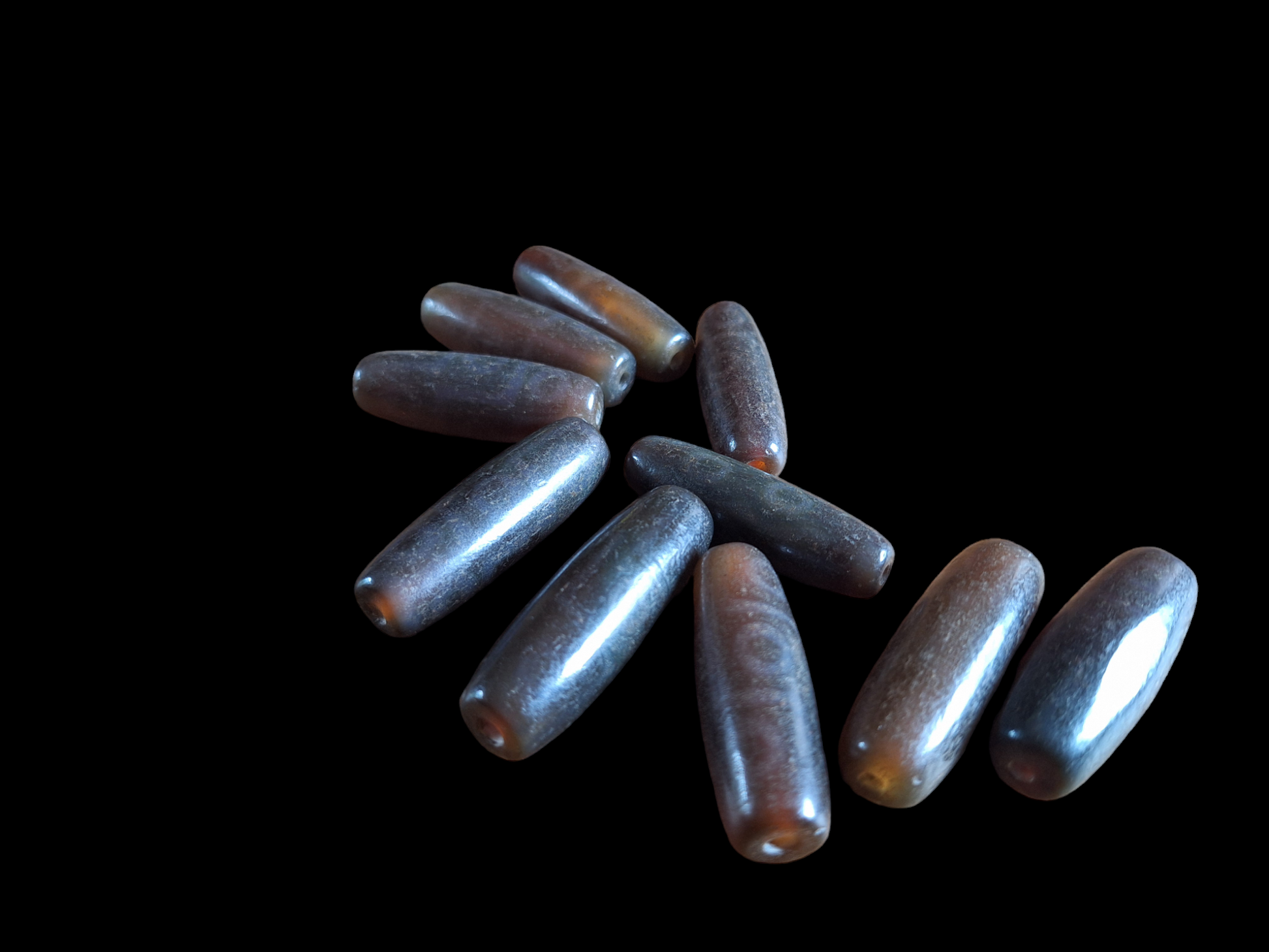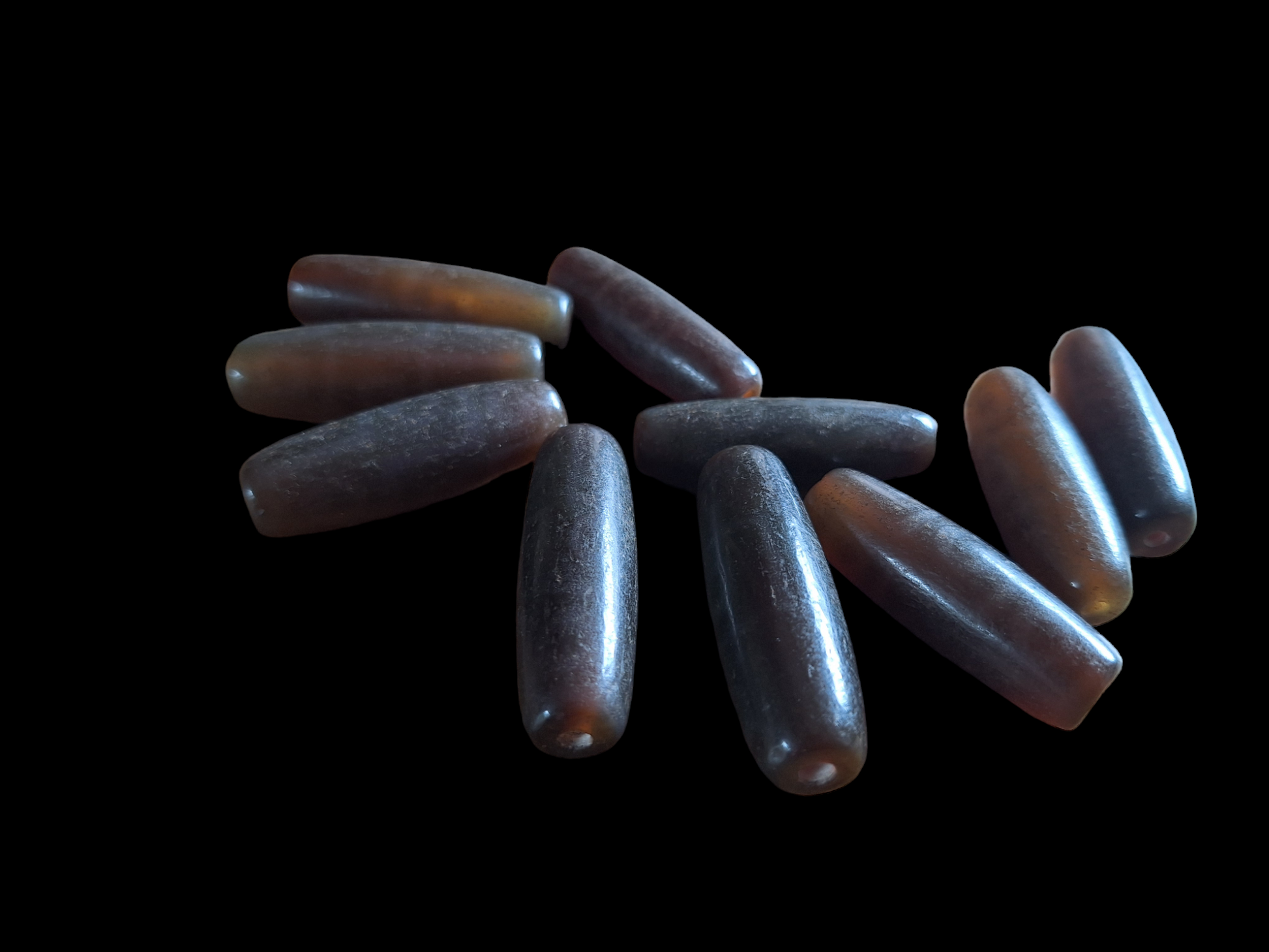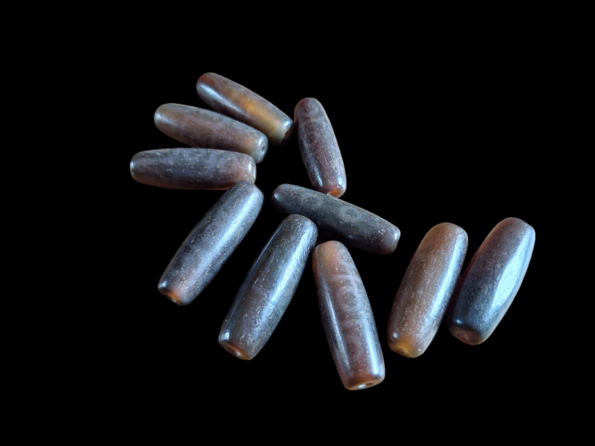 Material: natural agate, ranging from warm brown to dark brown, semi-transparent