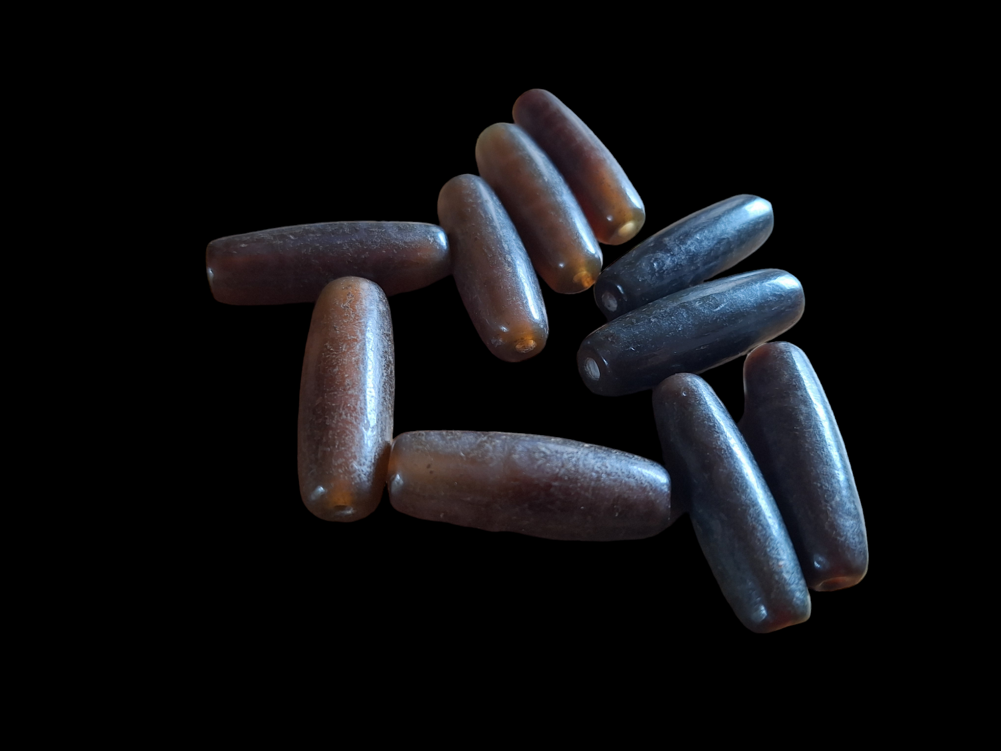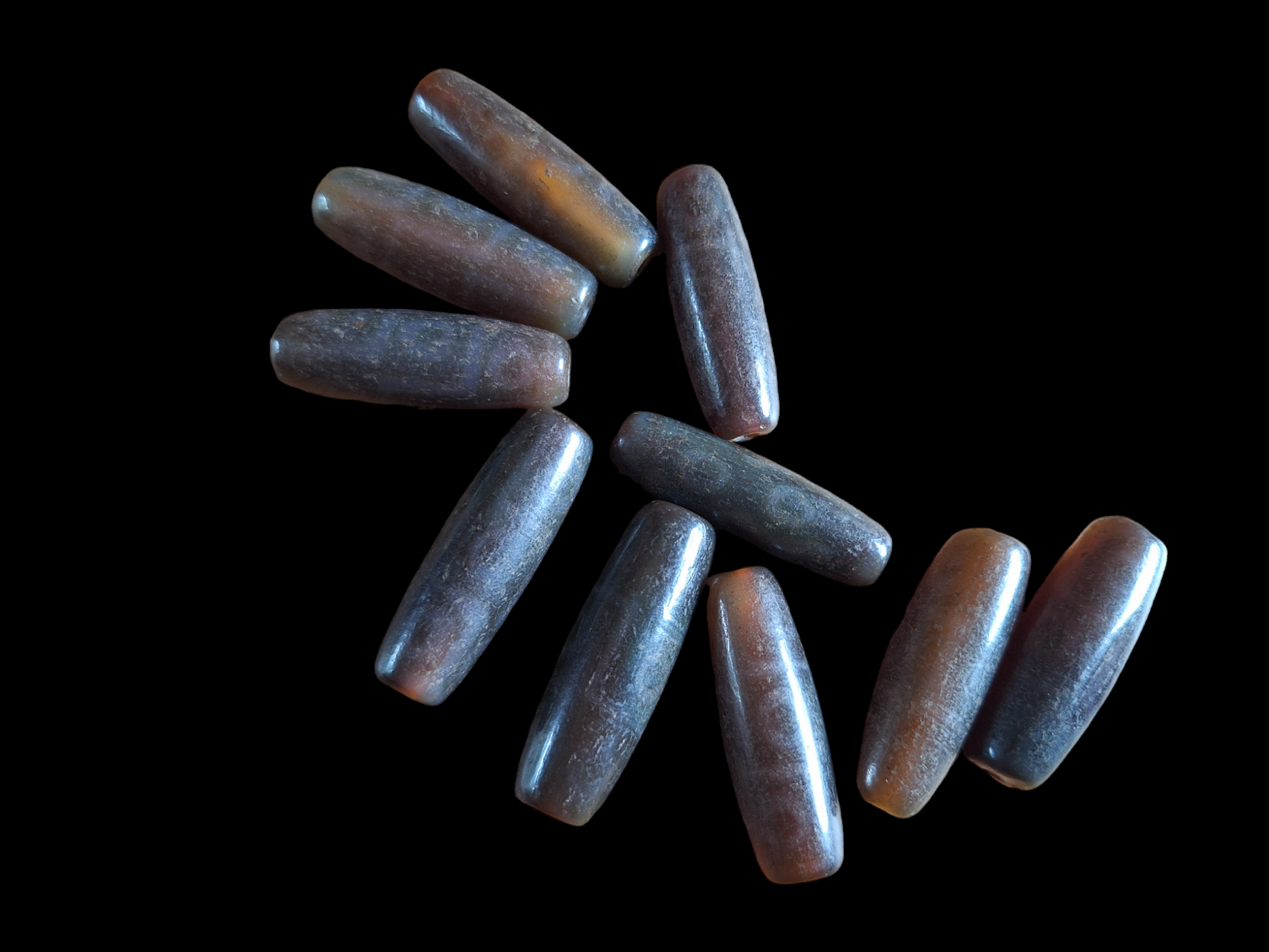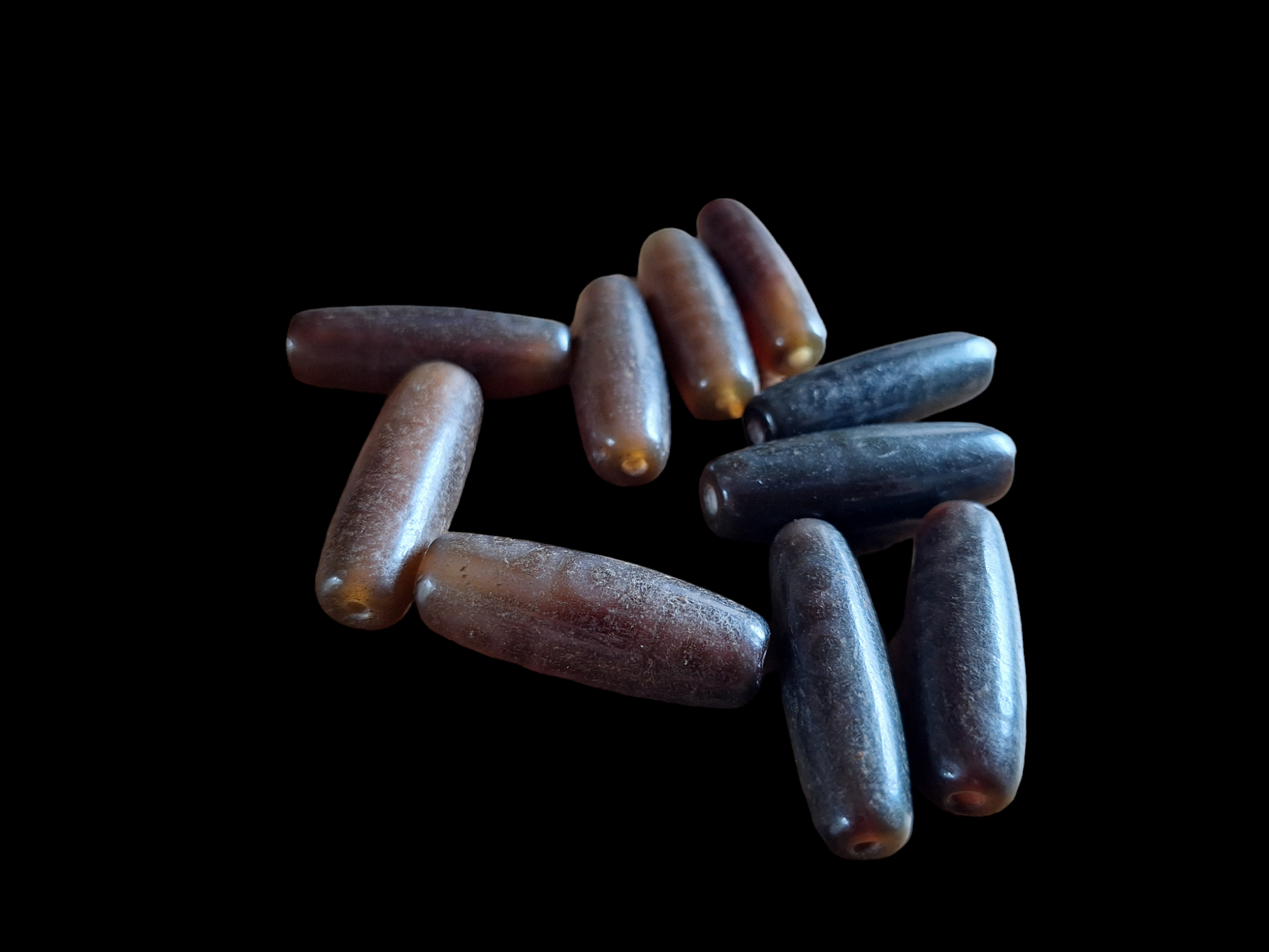 Material: natural agate, ranging from warm brown to dark brown, semi-transparent