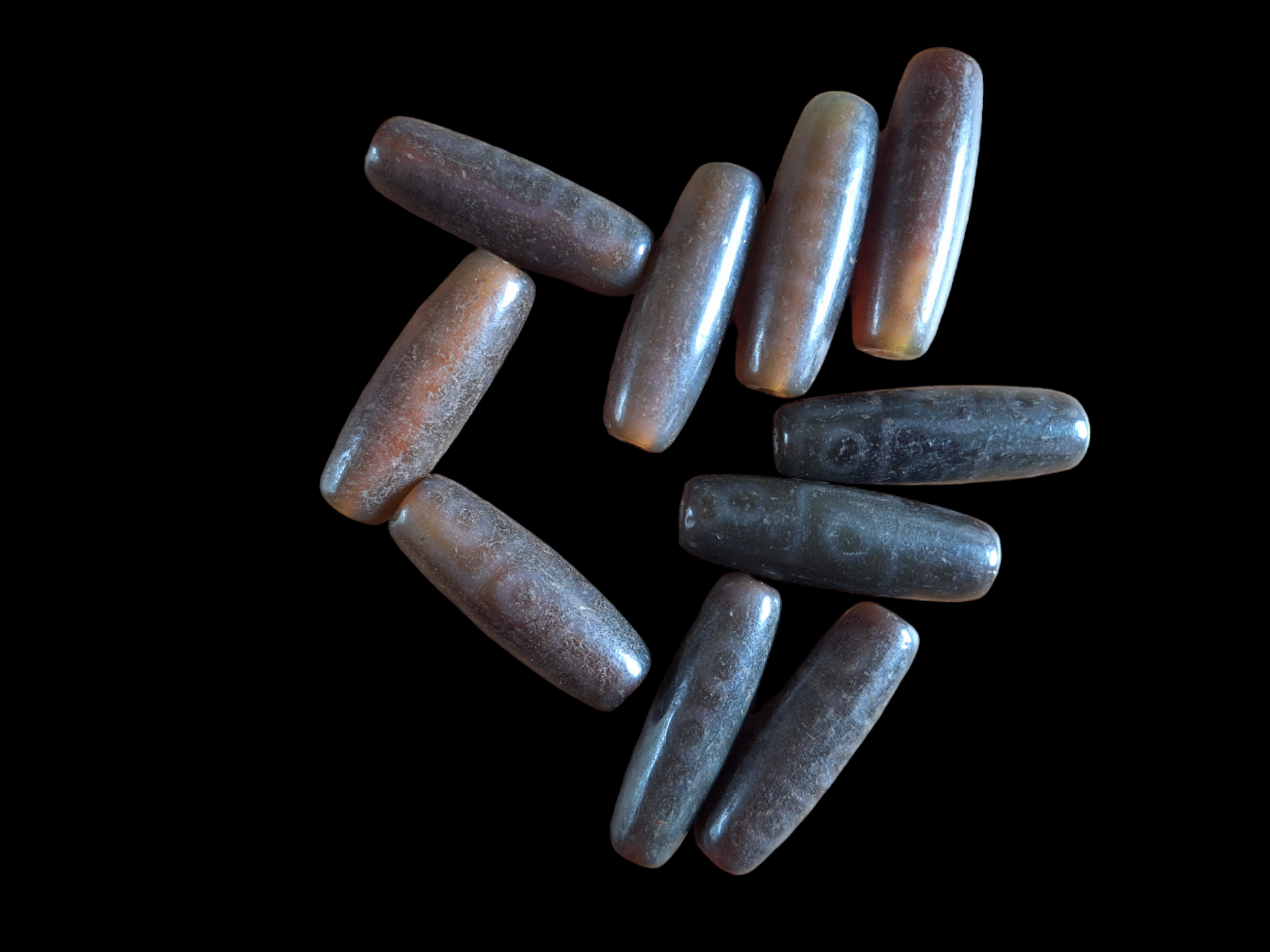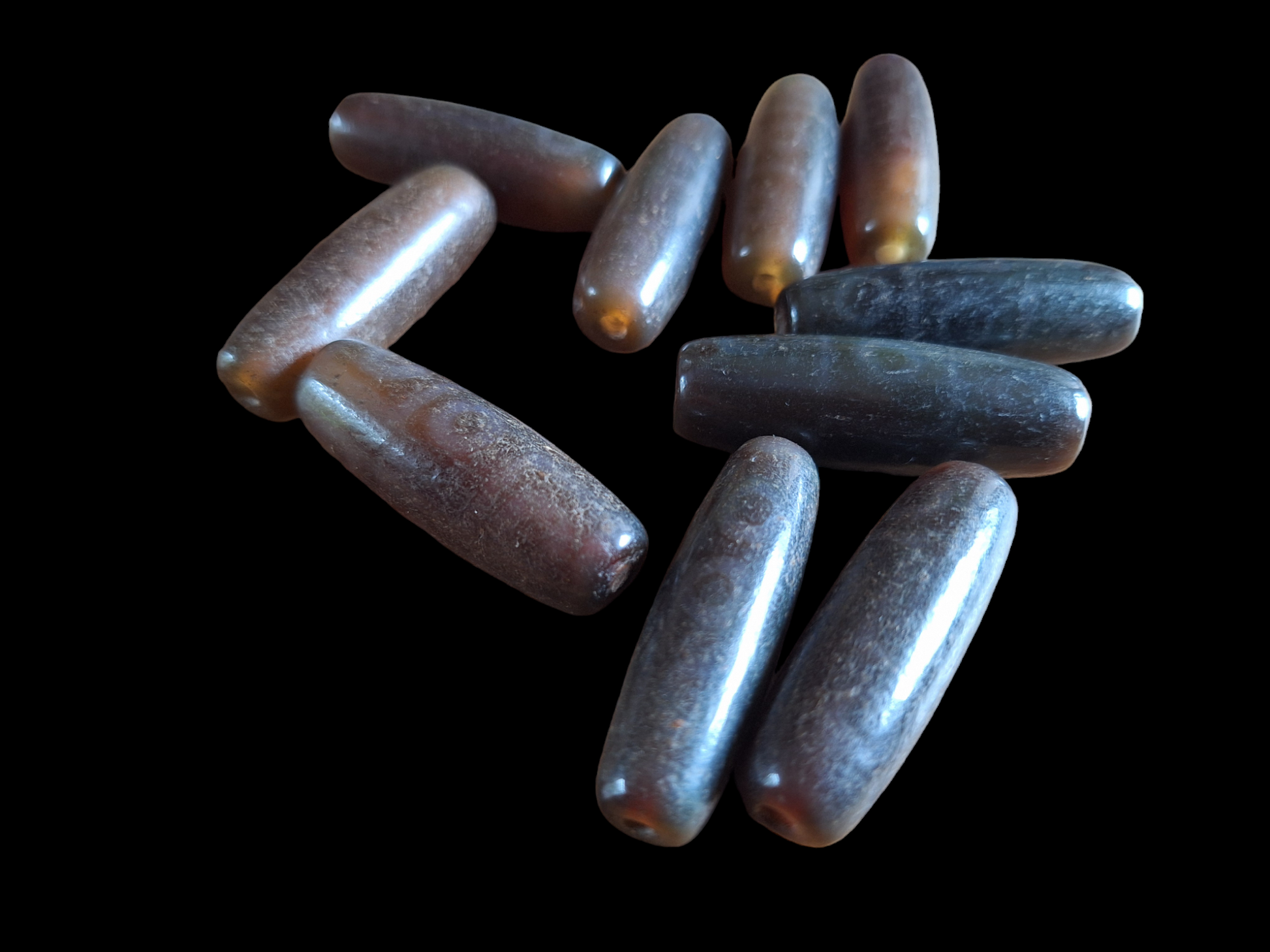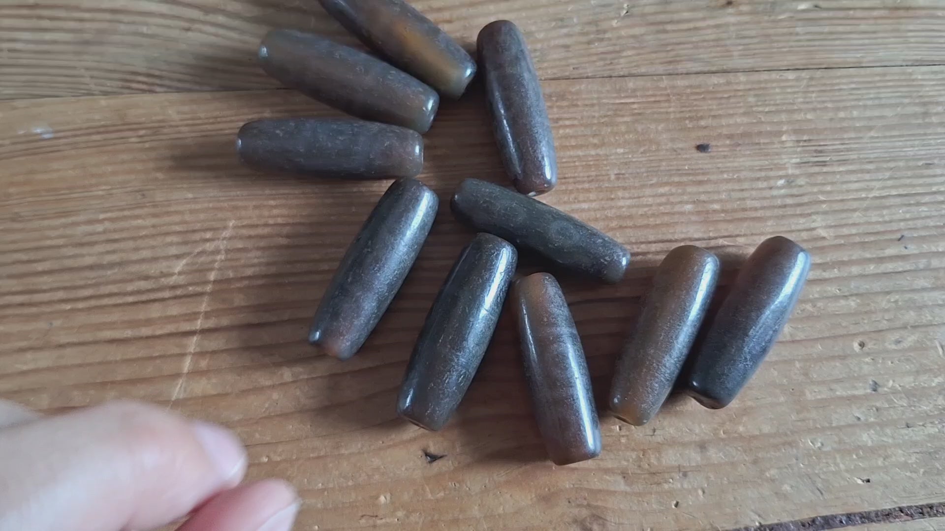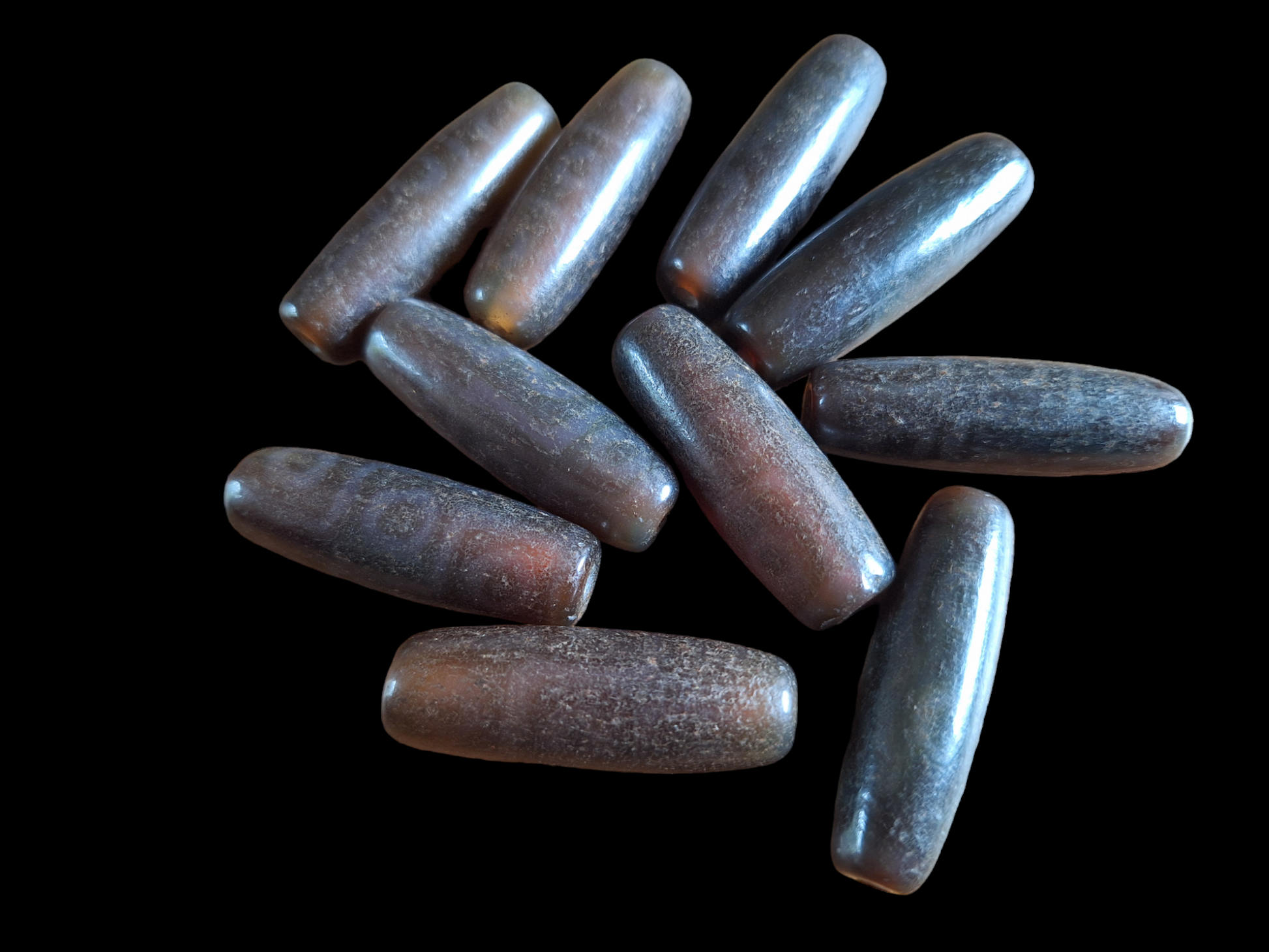 Material: natural agate, ranging from warm brown to dark brown, semi-transparent