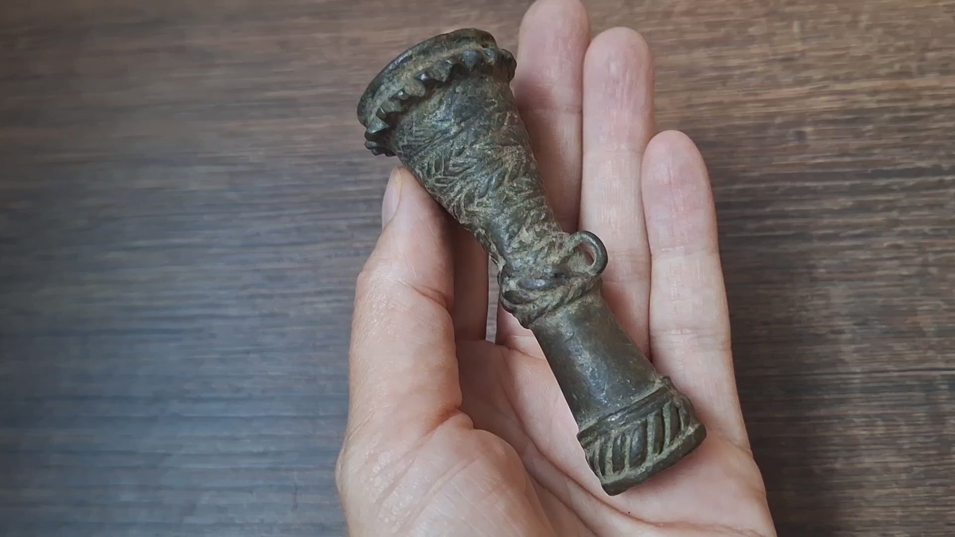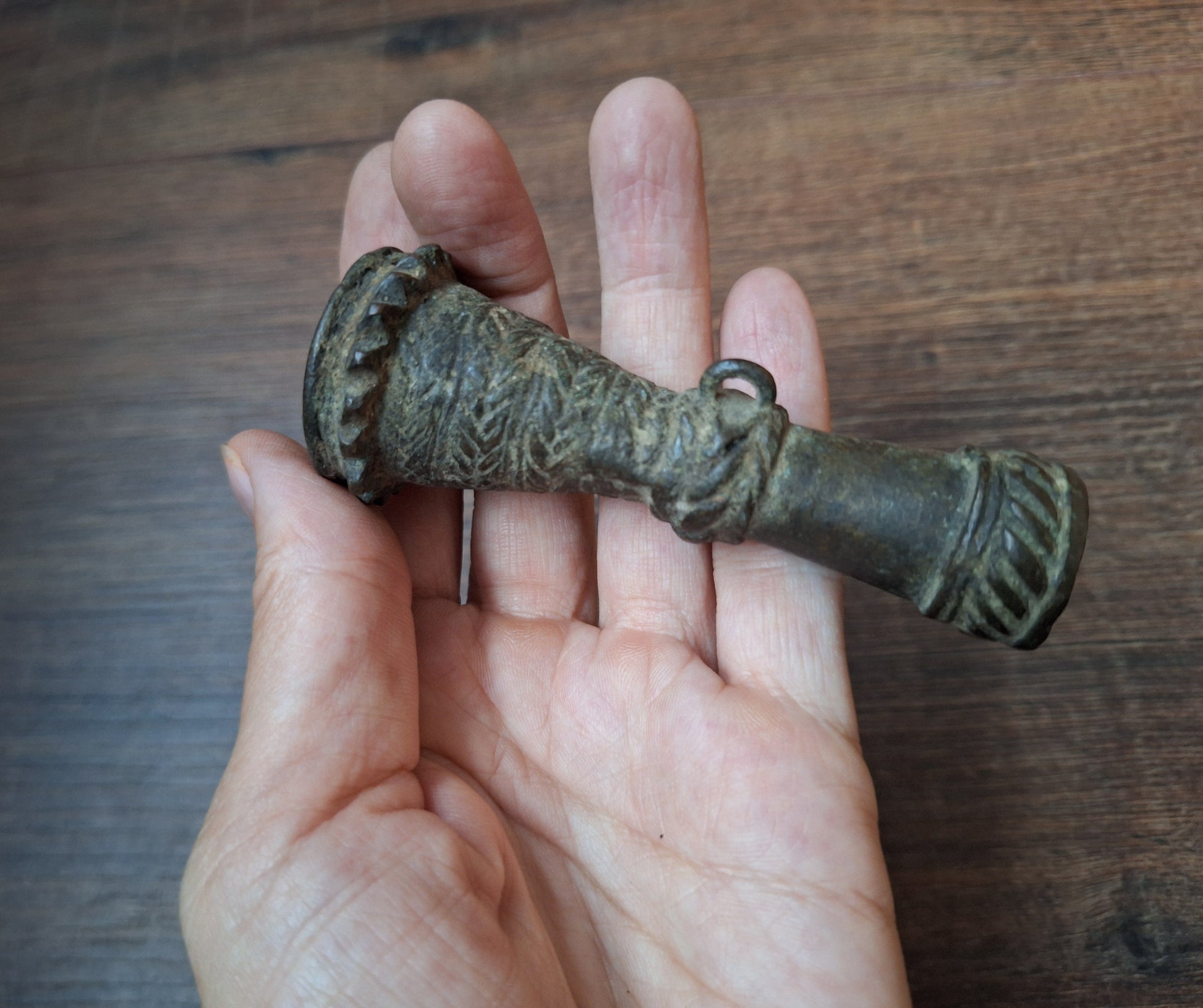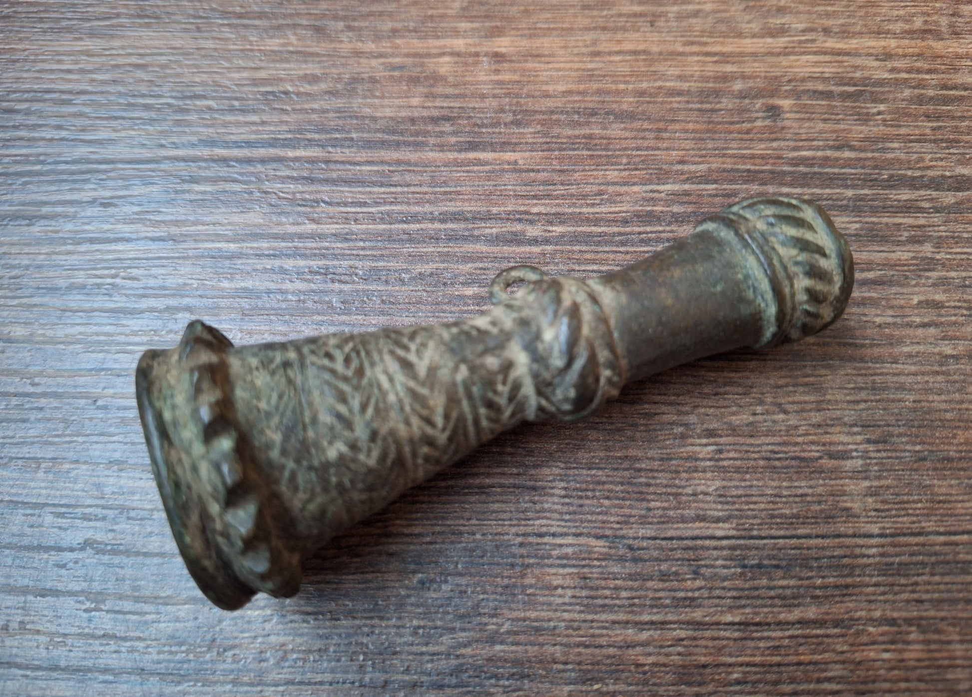 Antique bronze pipe from Nepal. A straight, conical pipe such as this is known as 'chillum'. Their origin can be traced back at least a few hundred years in India and Nepal, with a first written account in English about them in the 18th century. In India and Nepal, the chillum is the traditional pipe of the sadhu, the Hinduist ascetics or yogi's, who use is mostly for smoking ganja.