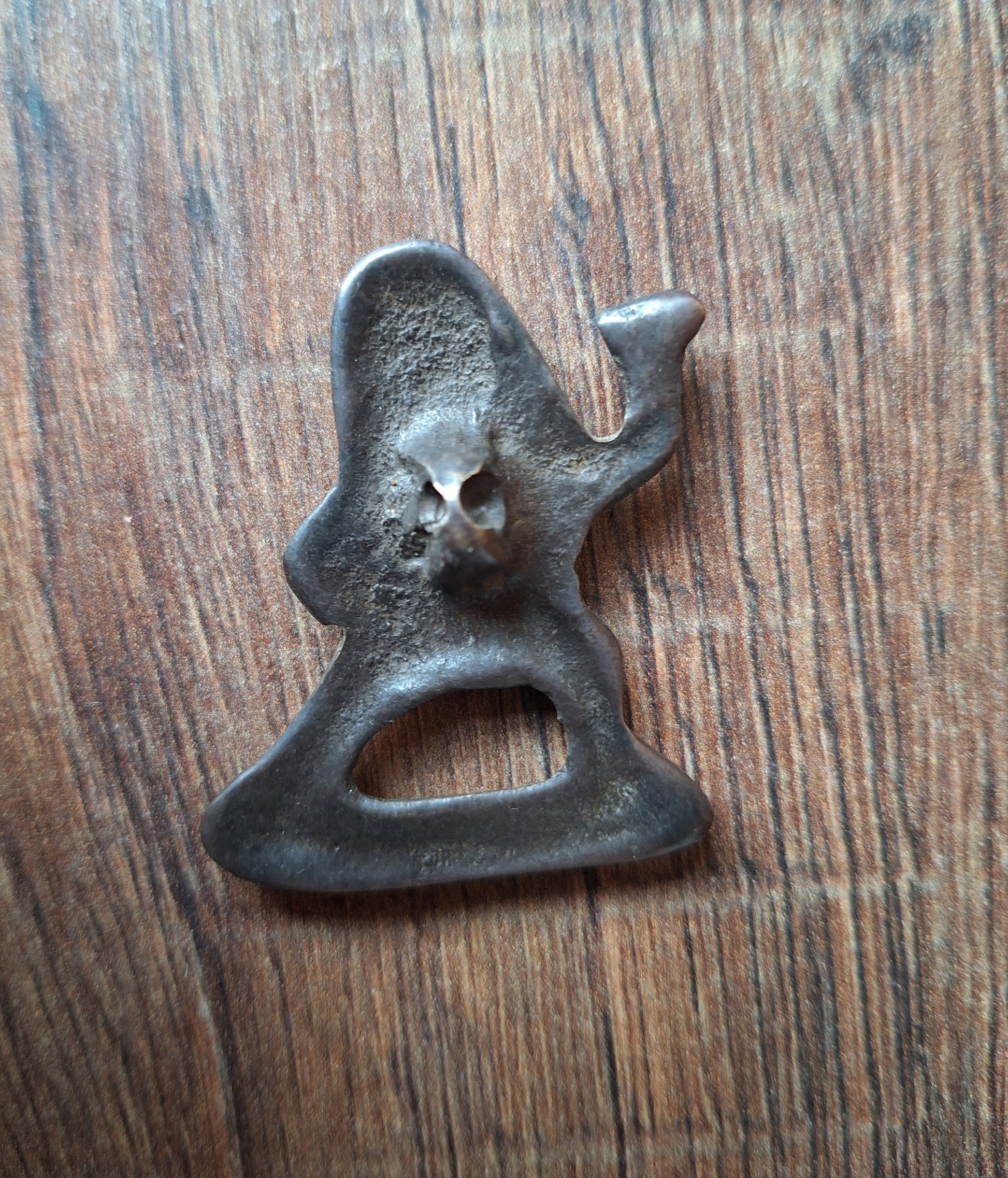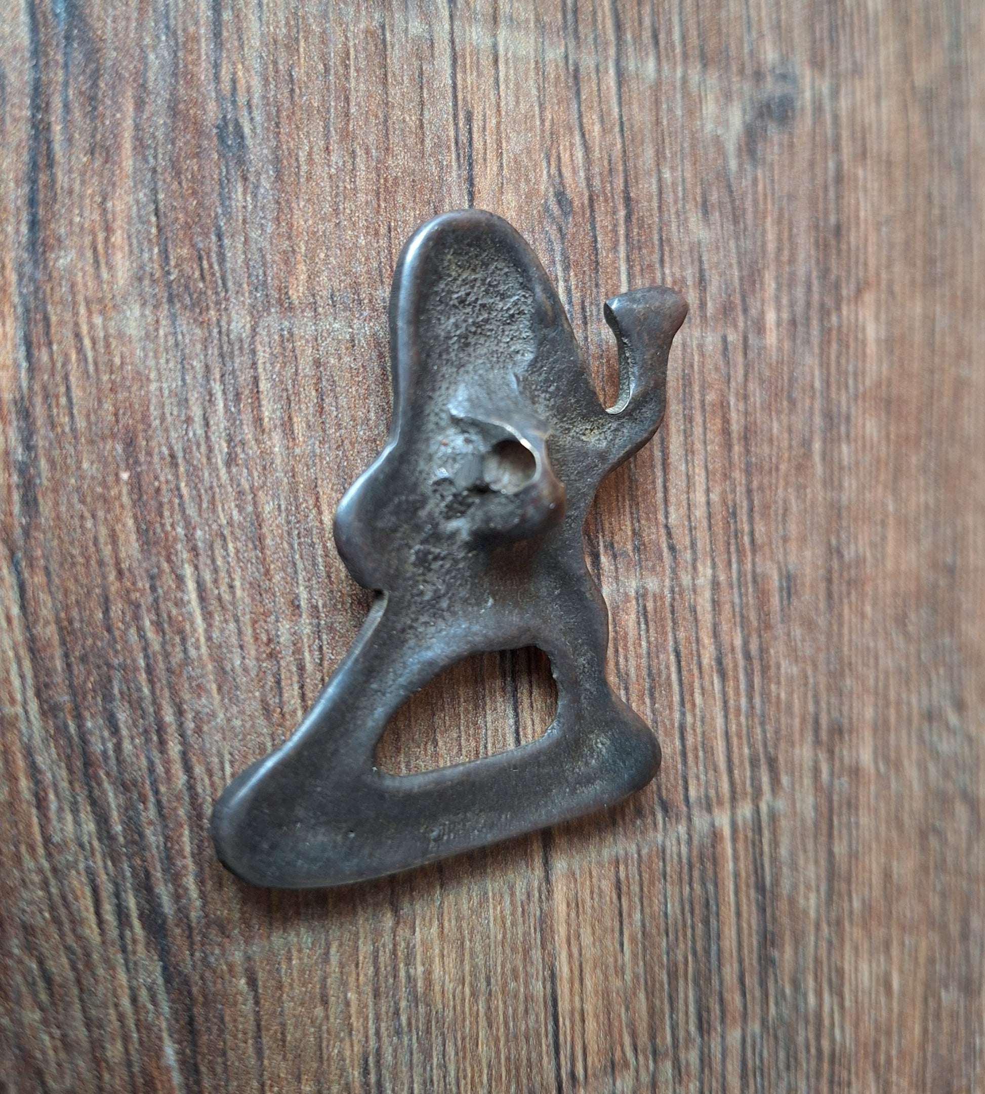 Thogchags can be made in several forms and often depict tantric deities, mythological or real animals or ancient symbols. Also ritual attributes such as phurba's or dorje's can often be found and even more daily, practical attributes such as arrowheads, fibulae and pieces of horse equipment. They often are very abstract in their depictions, which for really old pieces of course further increases by being worn out into smooth surfaces and gaining a distinct patina.
