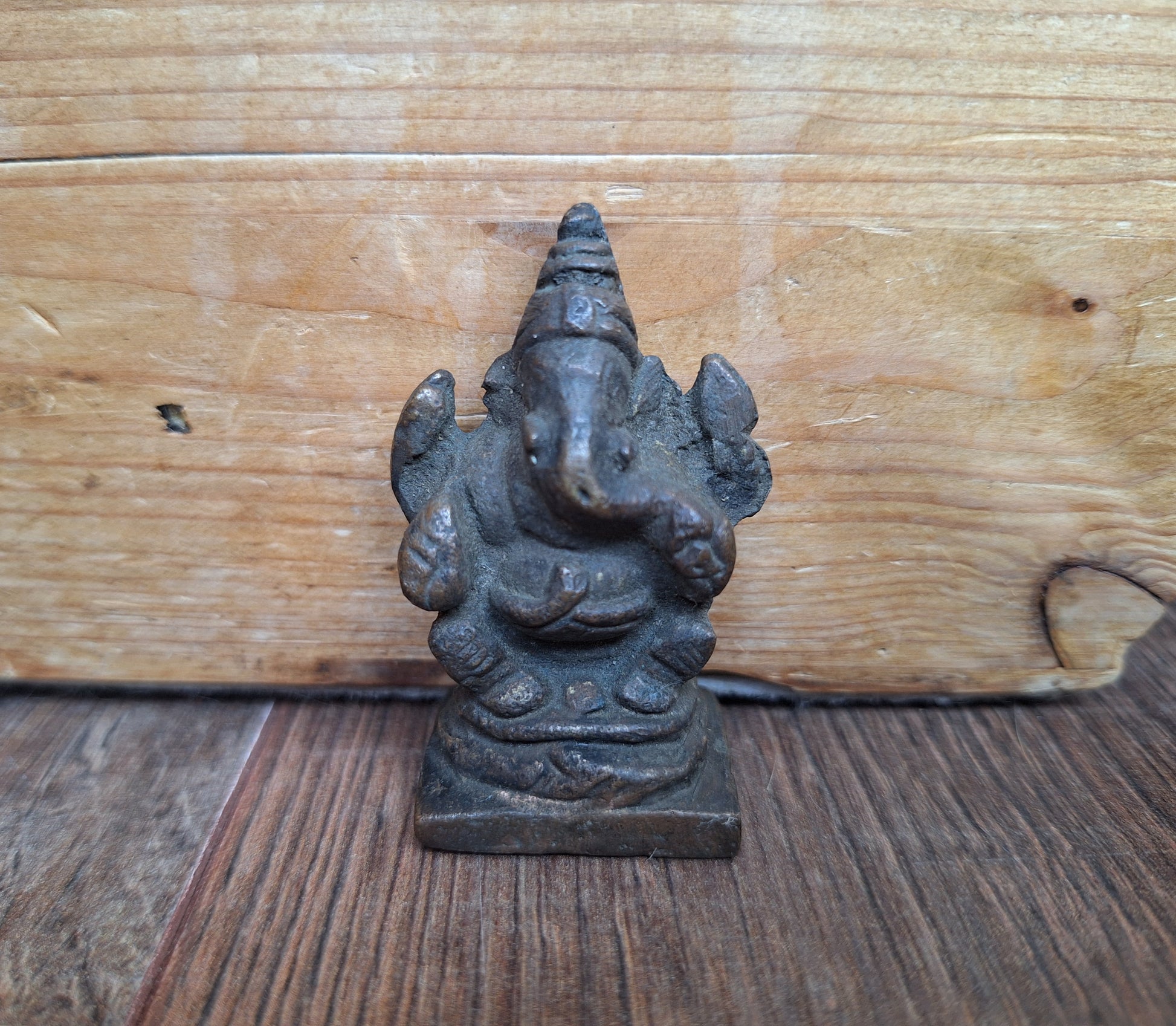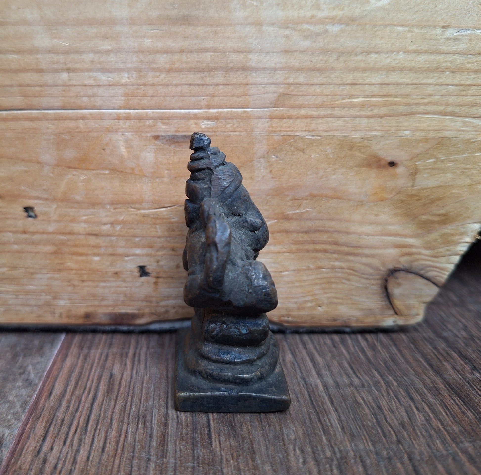 This figurine is an antique one and over its long years of previous usage the bronze has attained a beautiful dark color and aged patina.