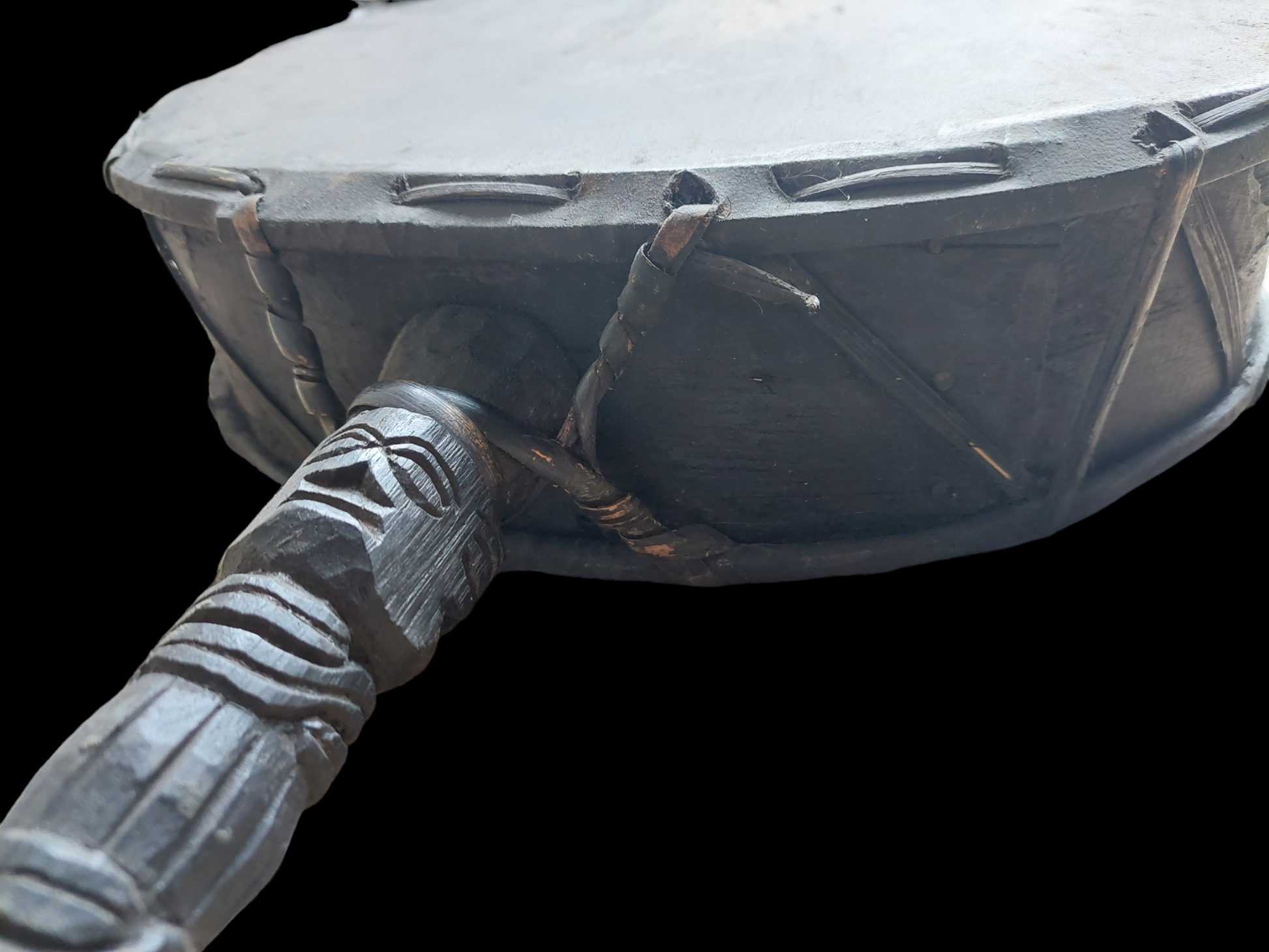 Due to its age and previous usage, of course some damages and imperfections can be seen, so please look closely at the pictures to observe the condition of this item. But overall it is still in very good condition and, most important of course; it is still in a very good playable condition. This drum is ready to be used in ritual and ceremony again by its next partner.