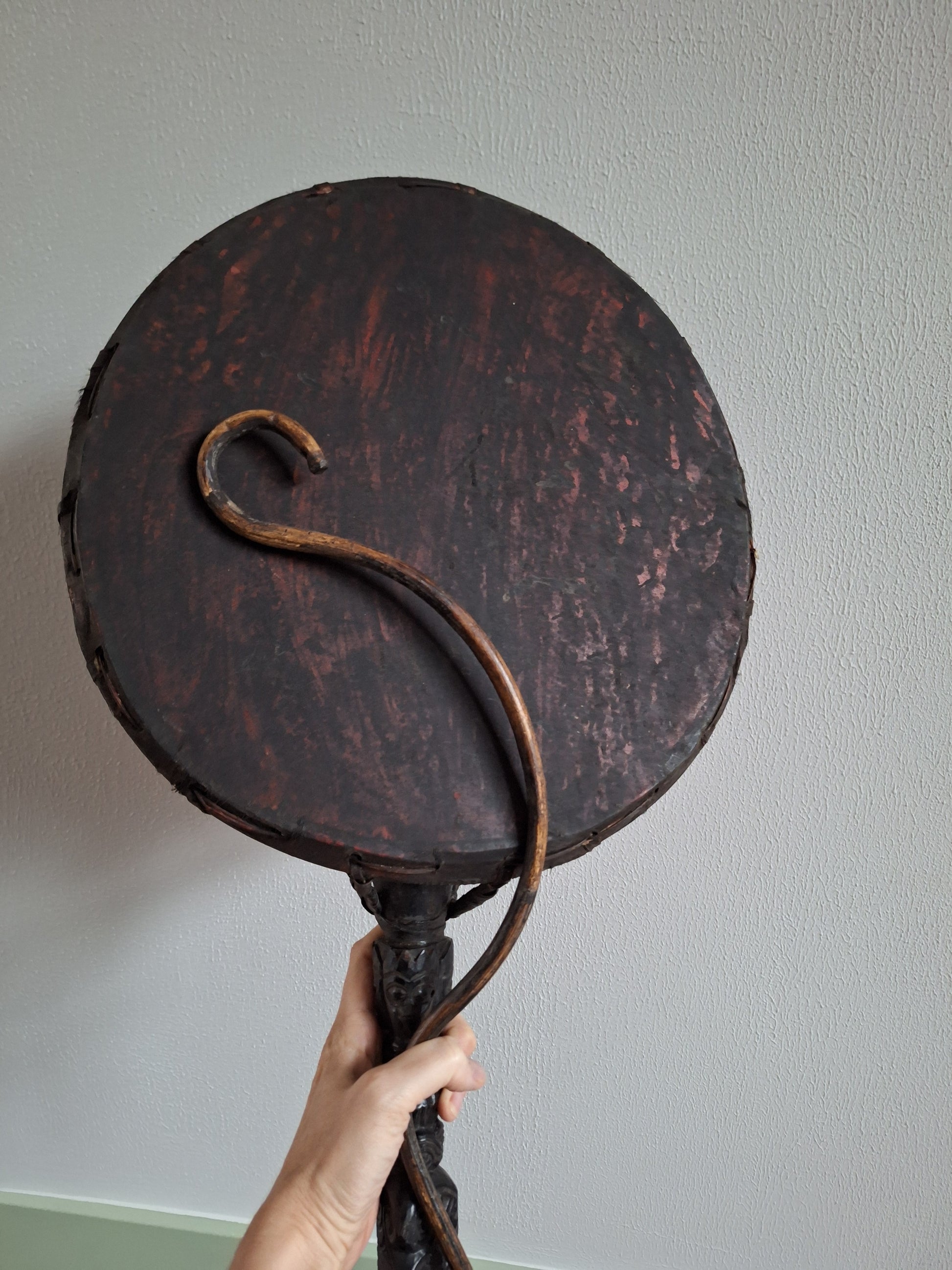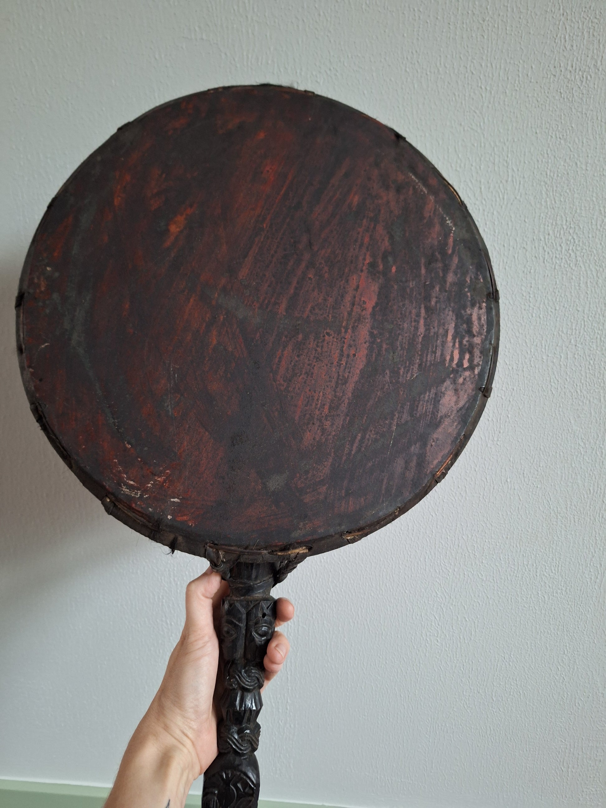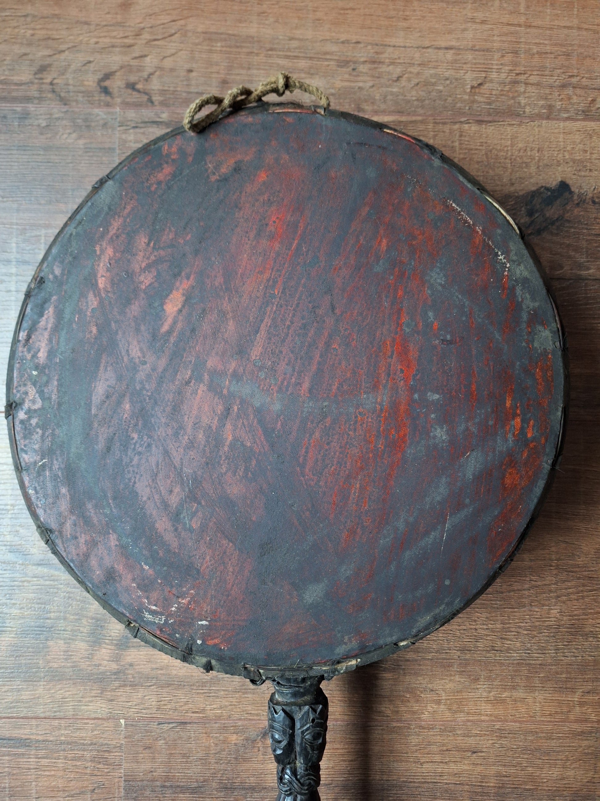 This drum is an old one already. It has been used by traditional Nepalese shamans before and is therefore much more than just a nice decorational object. It should be treated with the utmost care, respect and friendship.