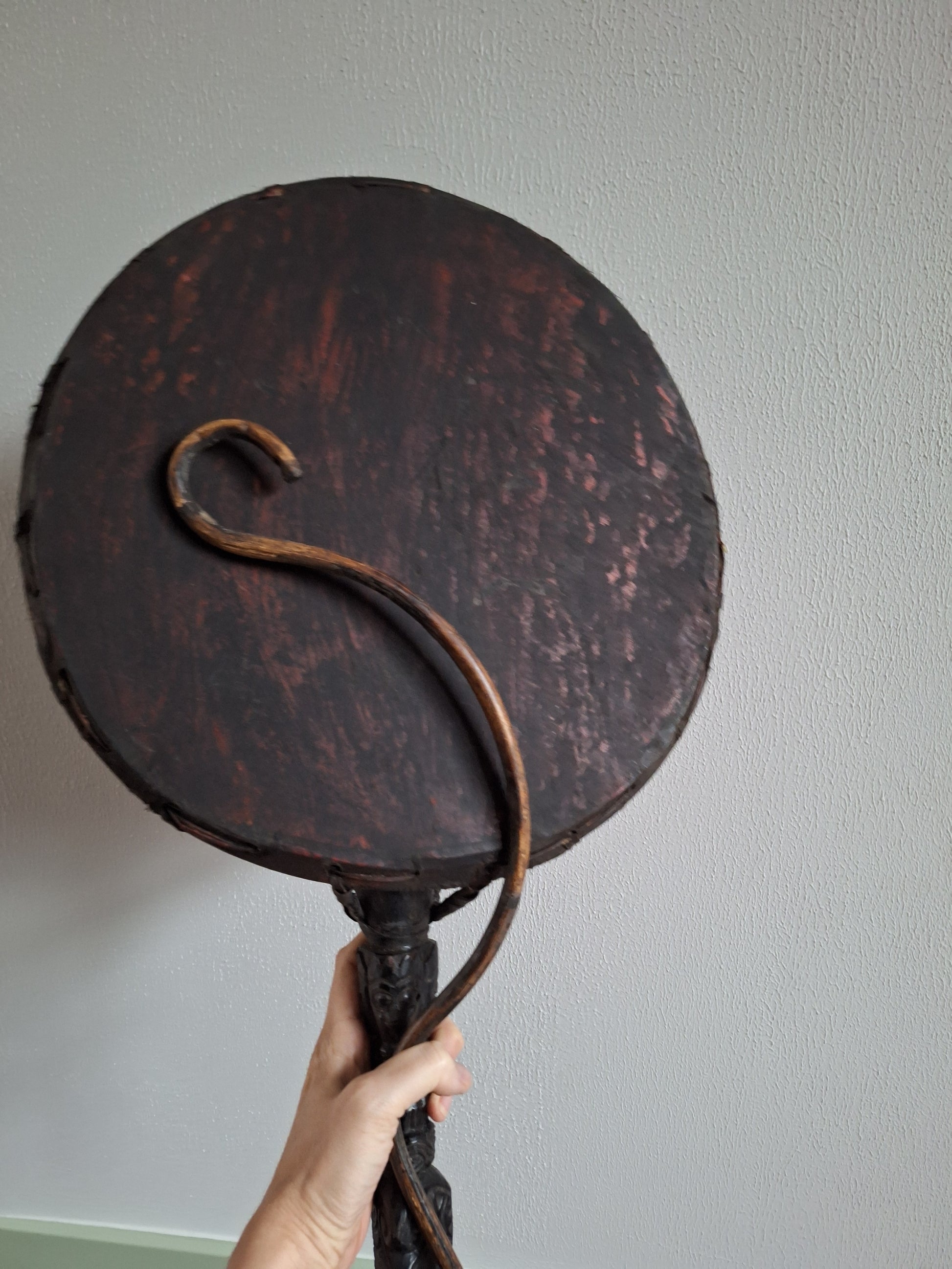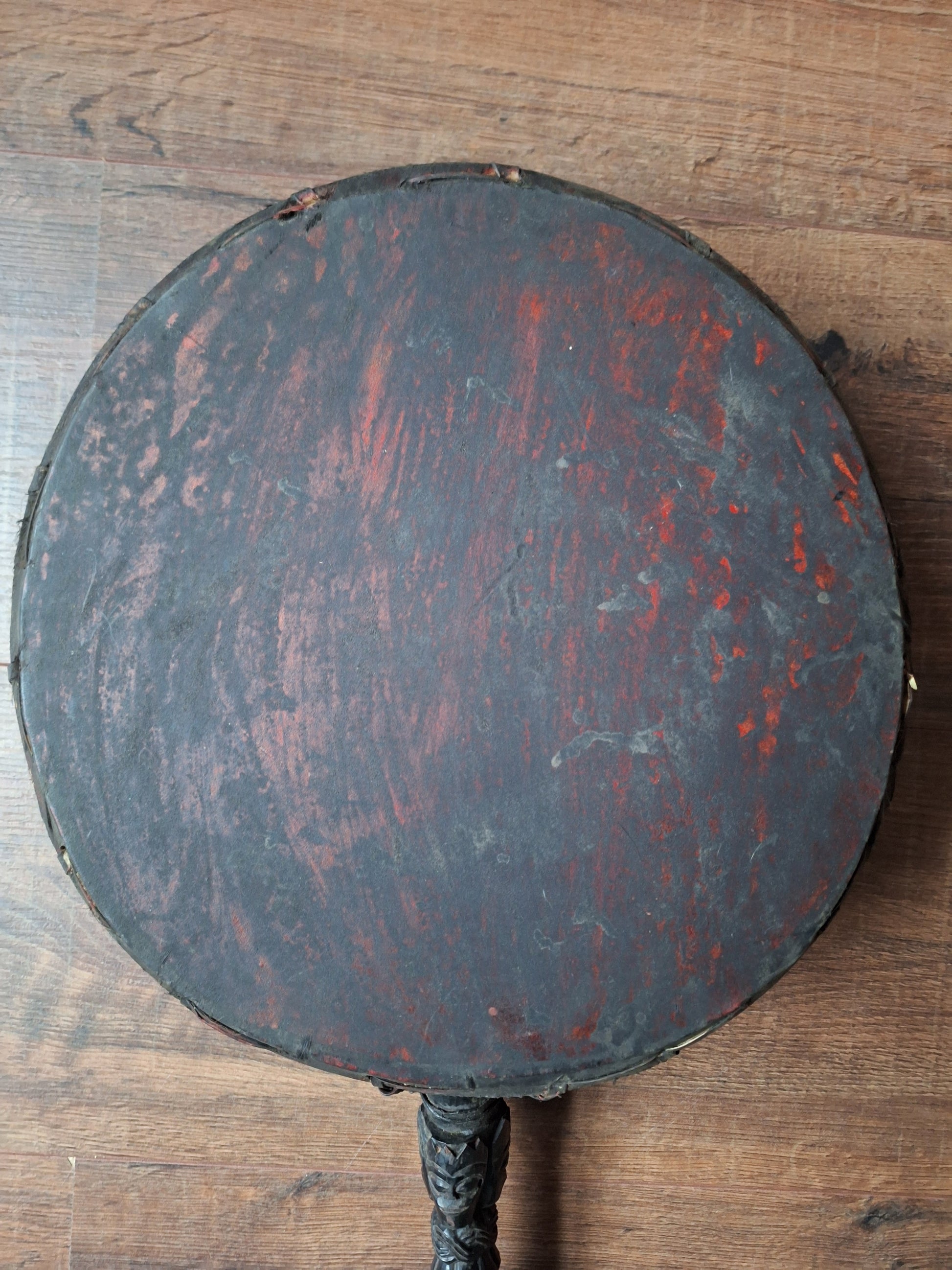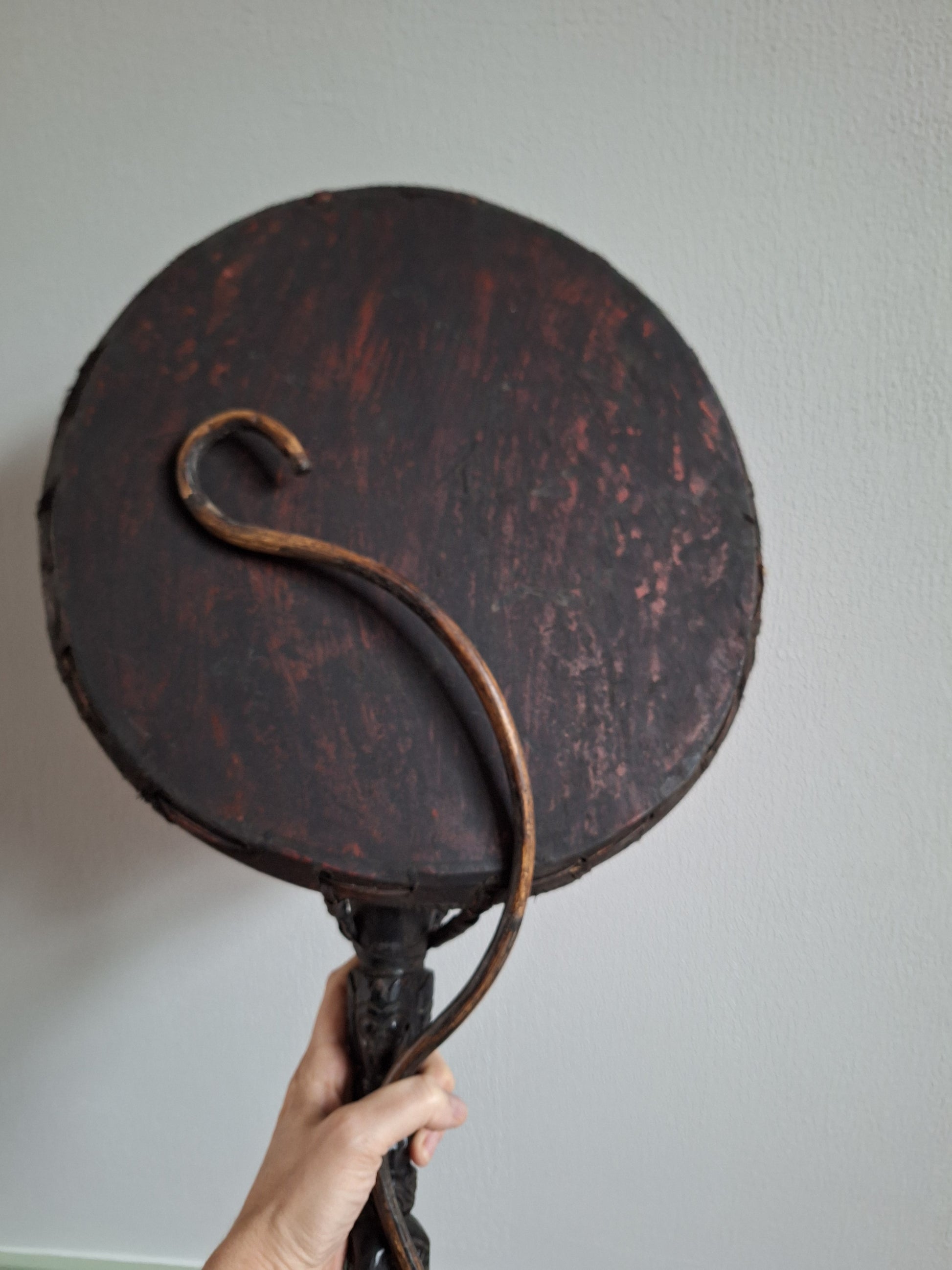 This drum is an old one already. It has been used by traditional Nepalese shamans before and is therefore much more than just a nice decorational object. It should be treated with the utmost care, respect and friendship.