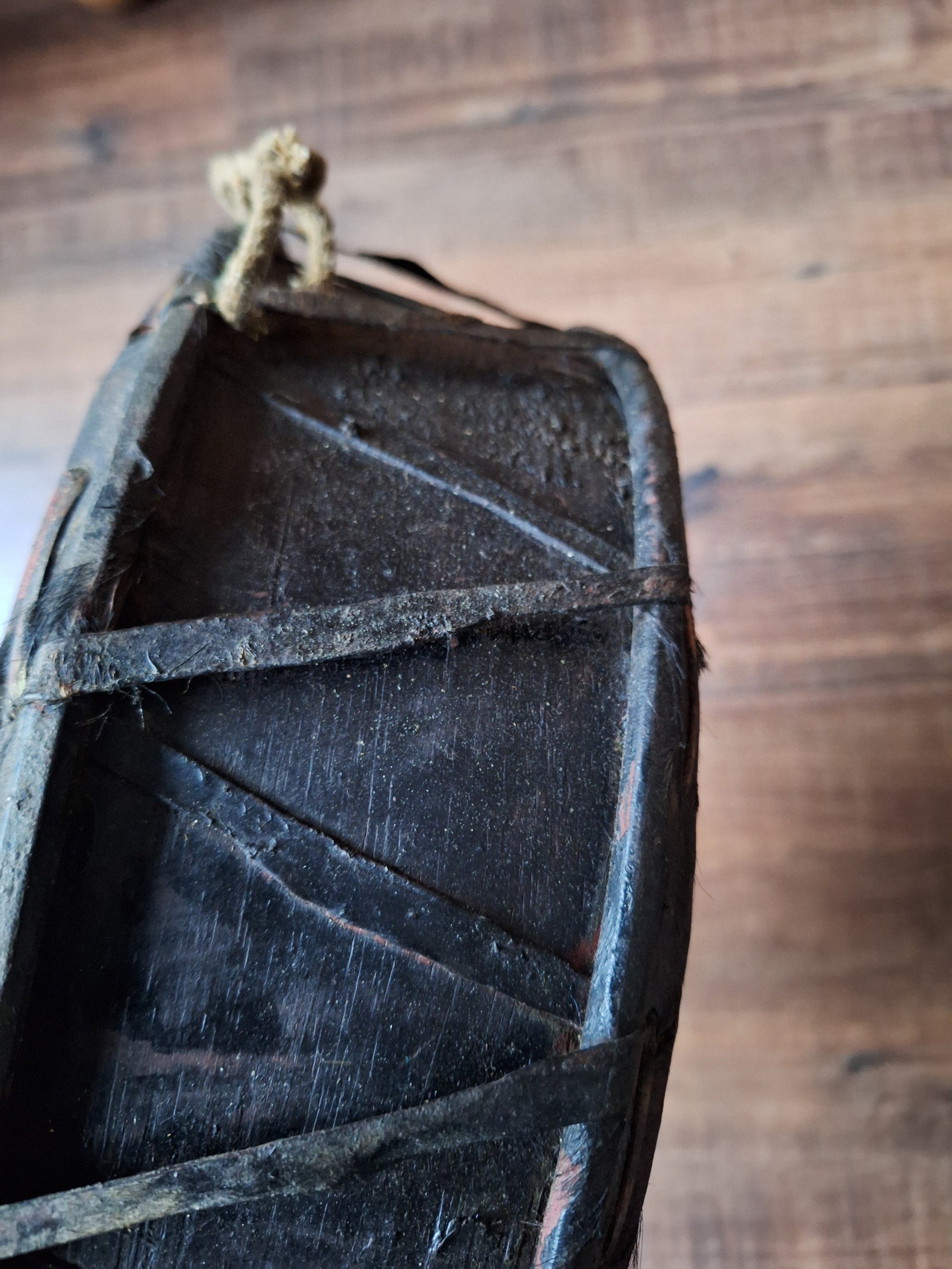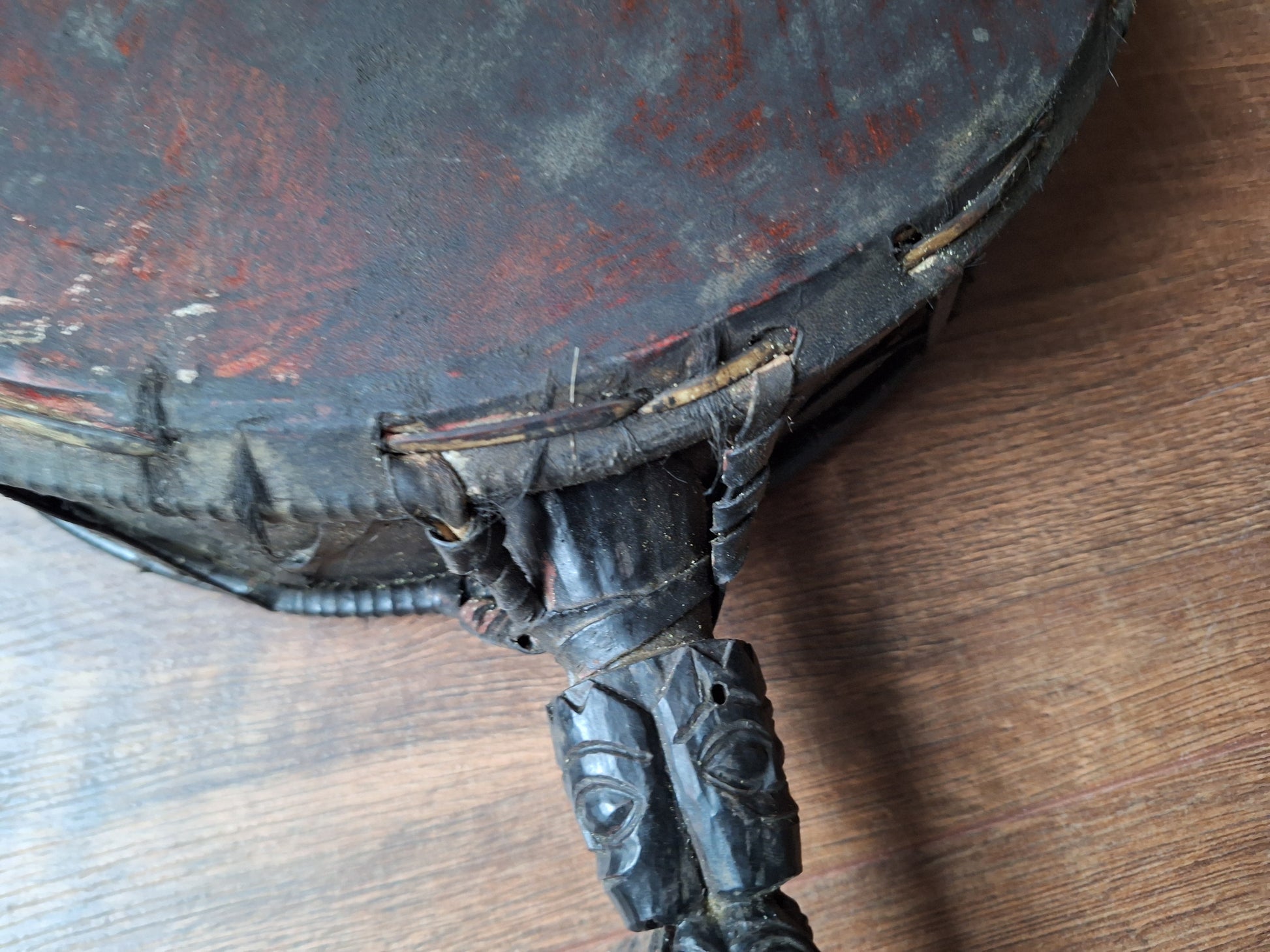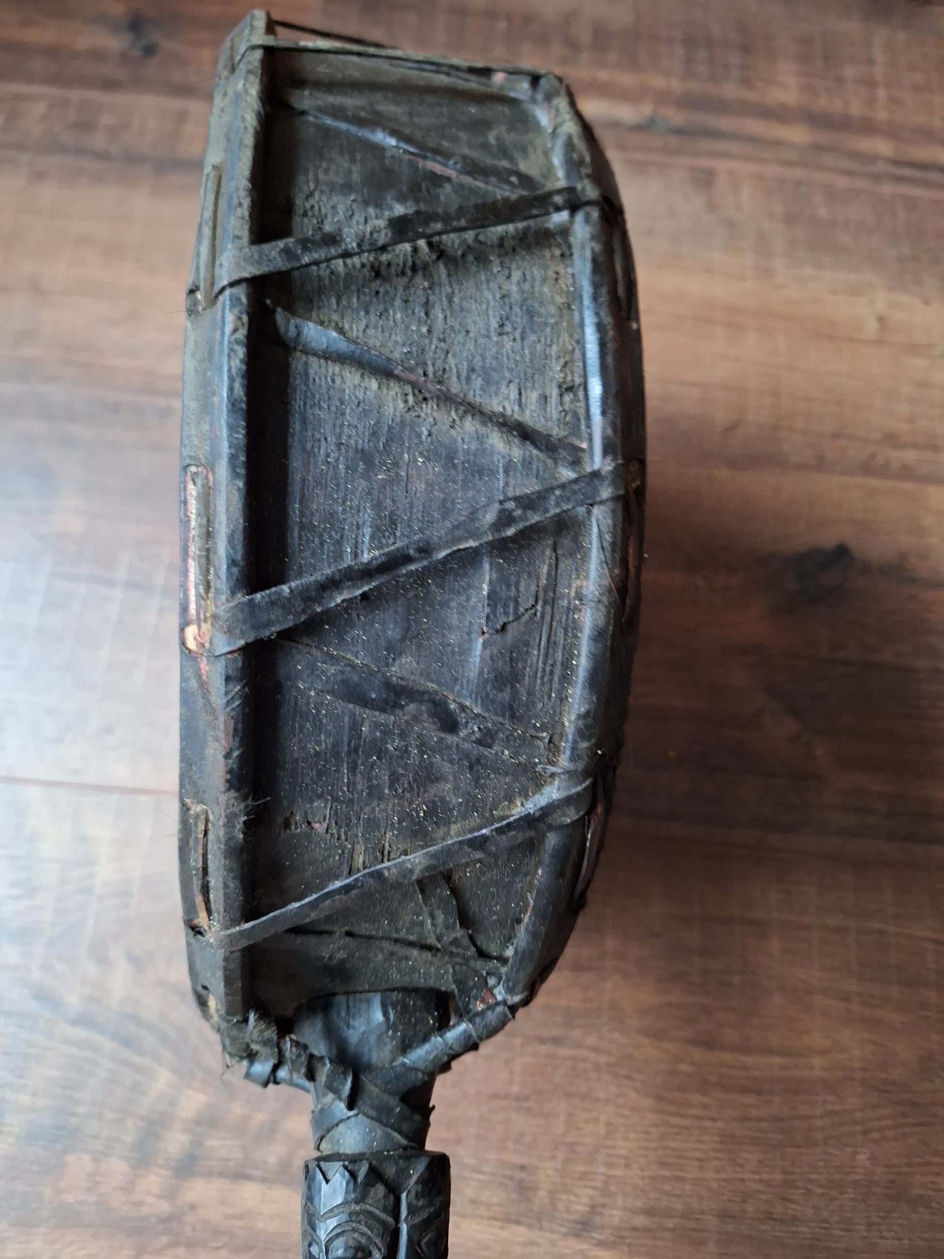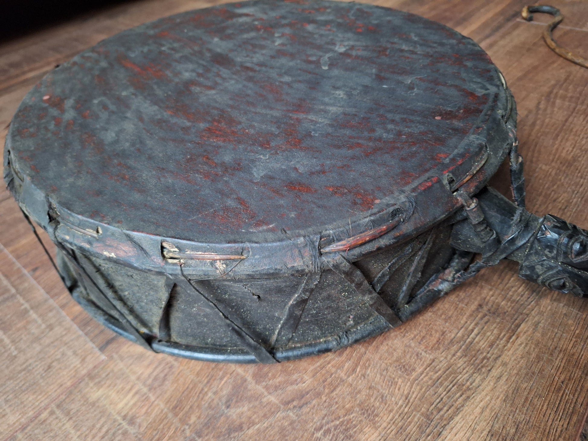 Due to its age and previous usage, of course some damages and imperfections can be seen, so please look closely at the pictures to observe the condition of this item. But overall it is still in very good condition and, most important of course; it is still in a very good playable condition. This drum is ready to be used in ritual and ceremony again by its next partner.