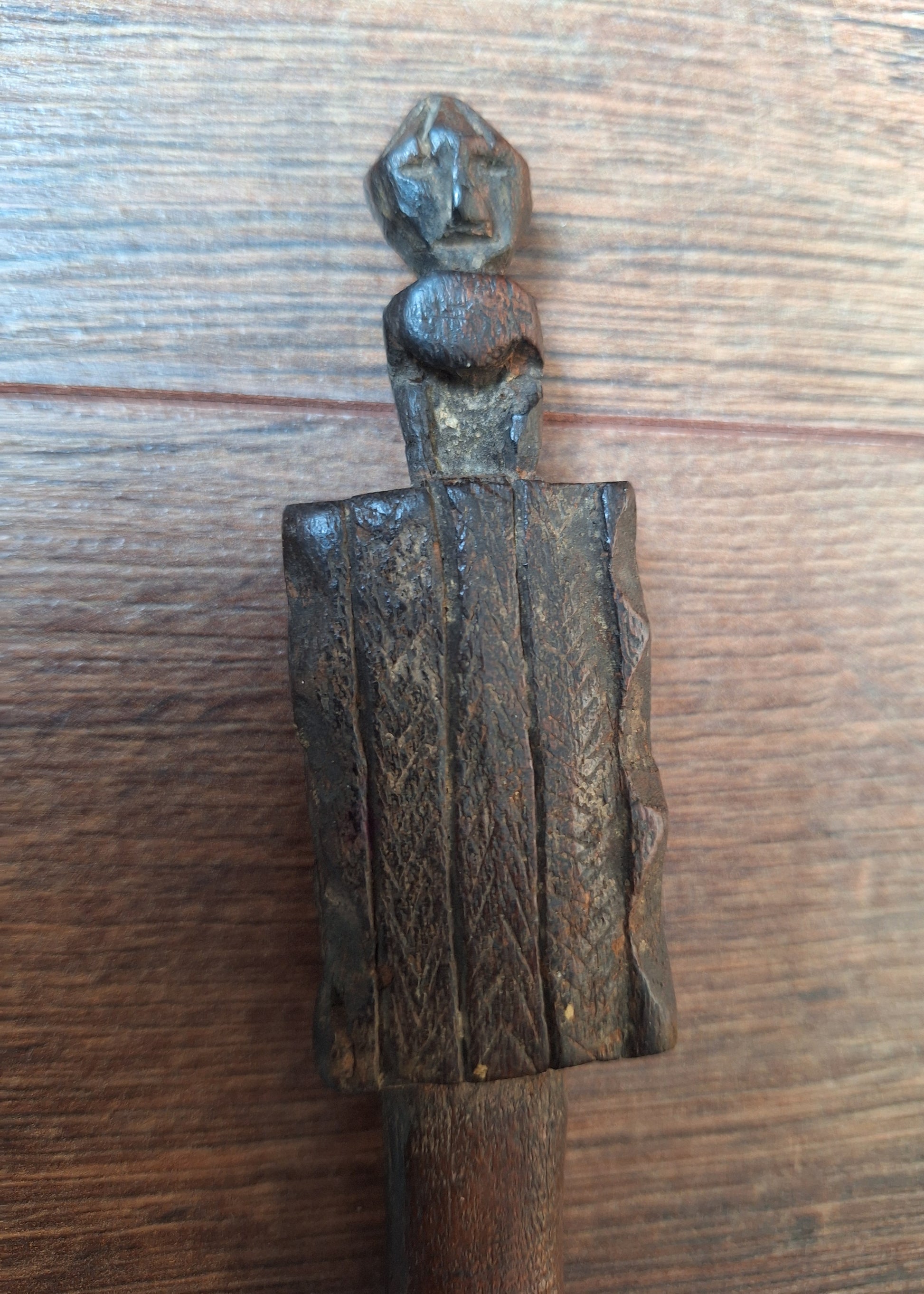 A truly amazing piece of artisan craftmanship. This antique drumbeater comes from a remote, rural area in Nepal and has been completely handcarved with great care and attention.
