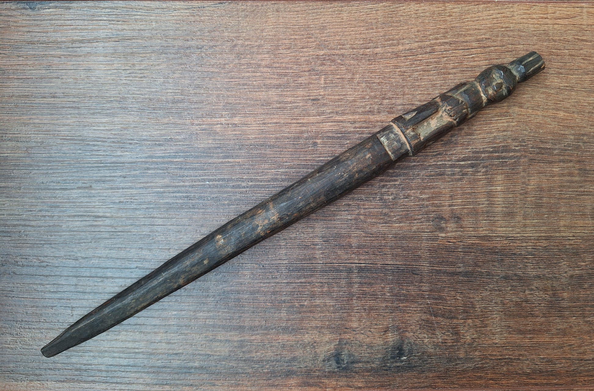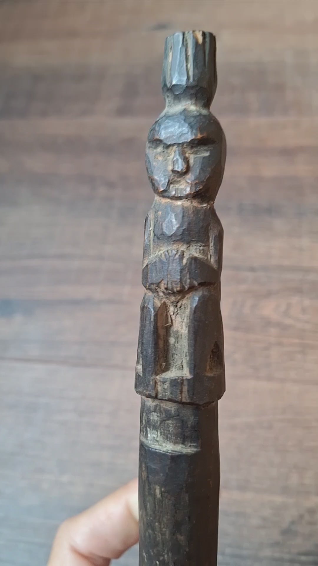 A truly amazing piece of artisan craftmanship. This antique drumbeater comes from a remote, rural area in Nepal and has been completely handcarved with great care and attention.