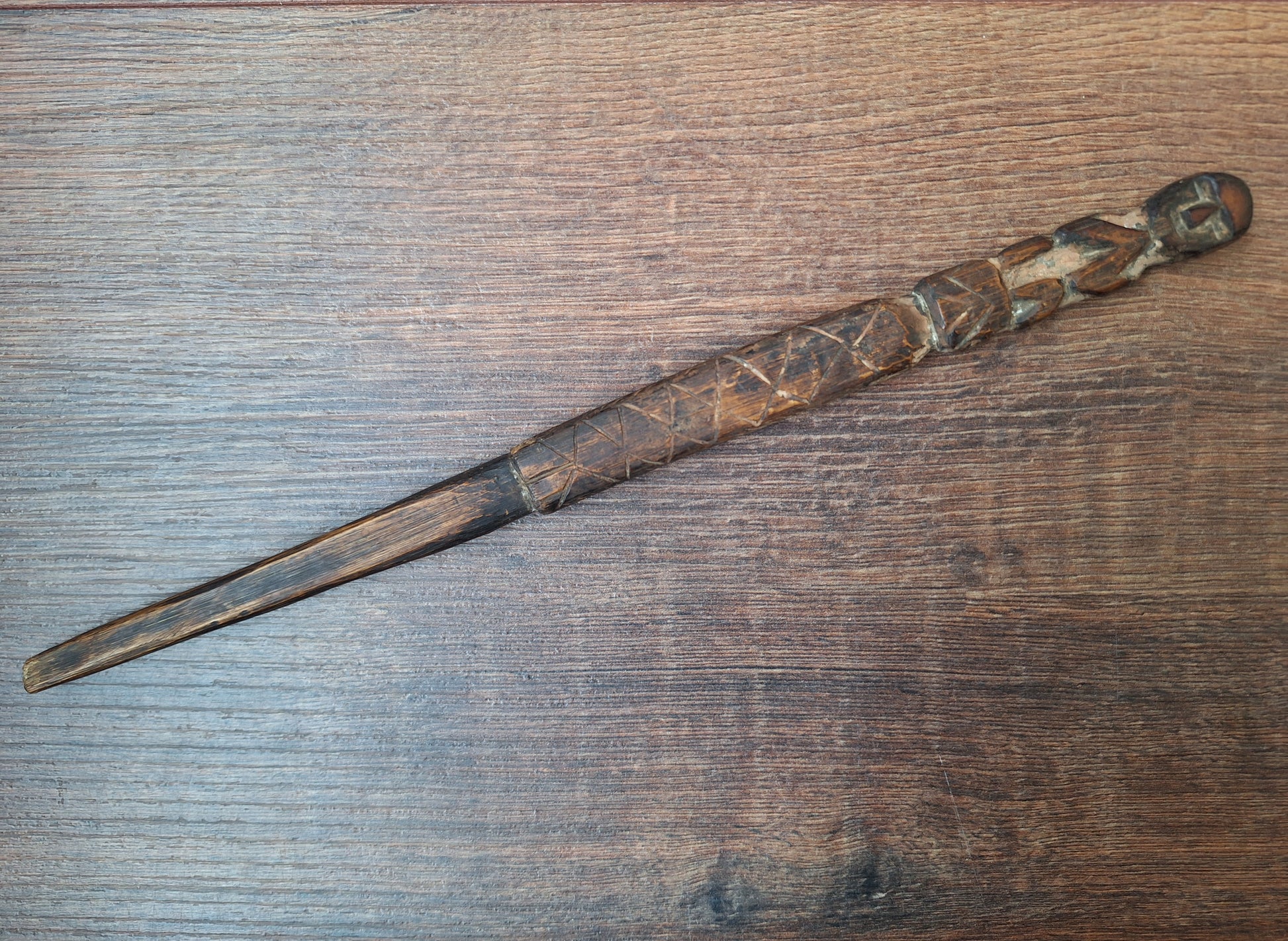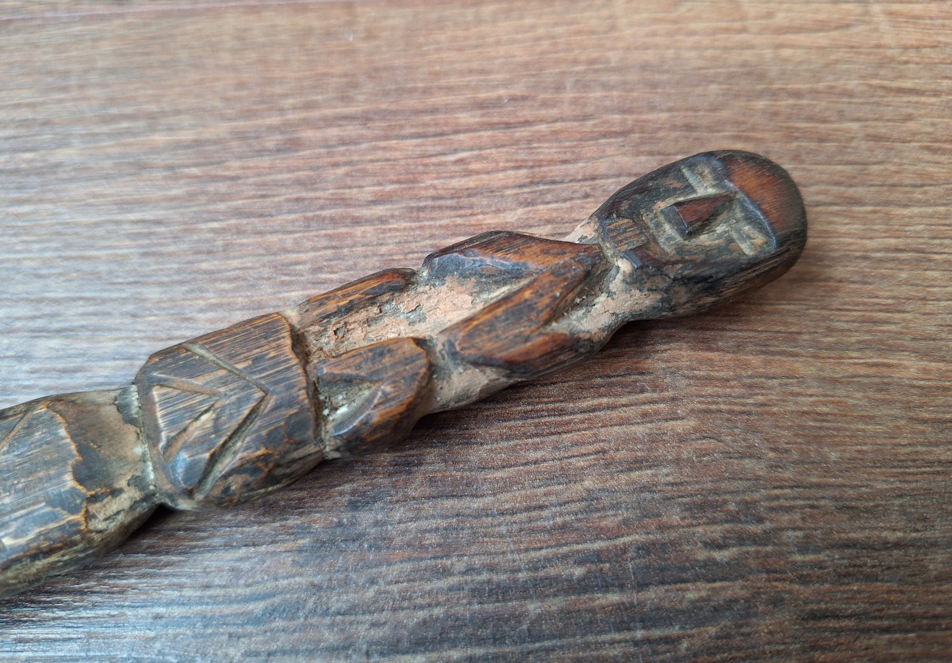 A truly amazing piece of artisan craftmanship. This antique drumbeater comes from a remote, rural area in Nepal and has been completely handcarved with great care and attention.