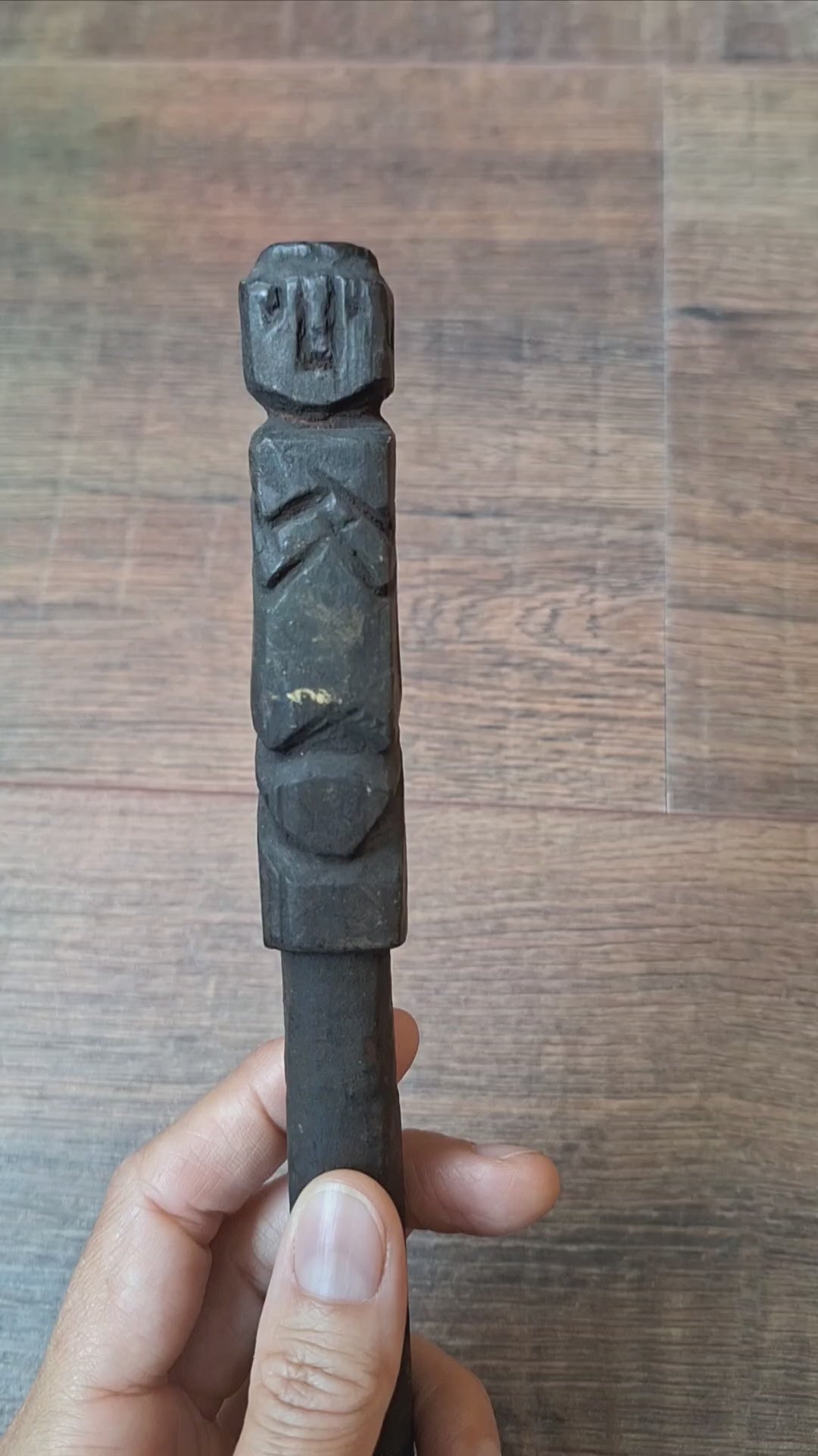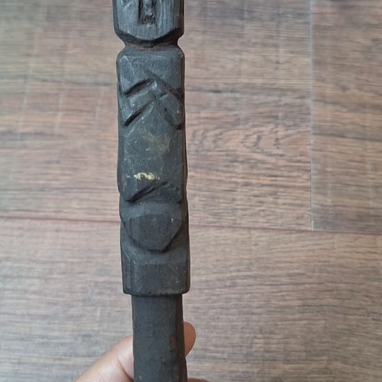 A truly amazing piece of artisan craftmanship. This antique drumbeater comes from a remote, rural area in Nepal and has been completely handcarved with great care and attention.