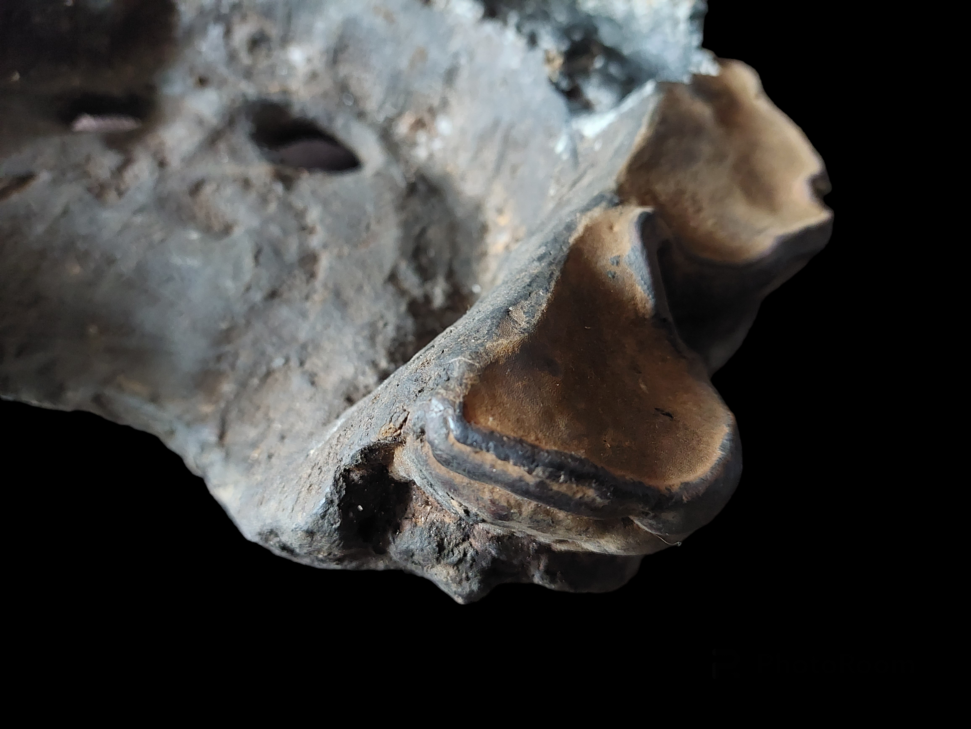 Masks such as this beautiful example are typical for animist tribes such as the Rai, Tharu and Terai people in the east of Nepal. They are made from a single large funghi, from Ganoderma or Fomes species, by minimal adjustments; only eyes and mouth and sometimes nose are carved out (or, as is the case here, a nose is made from a different piece of mushroom and attached to the mask).