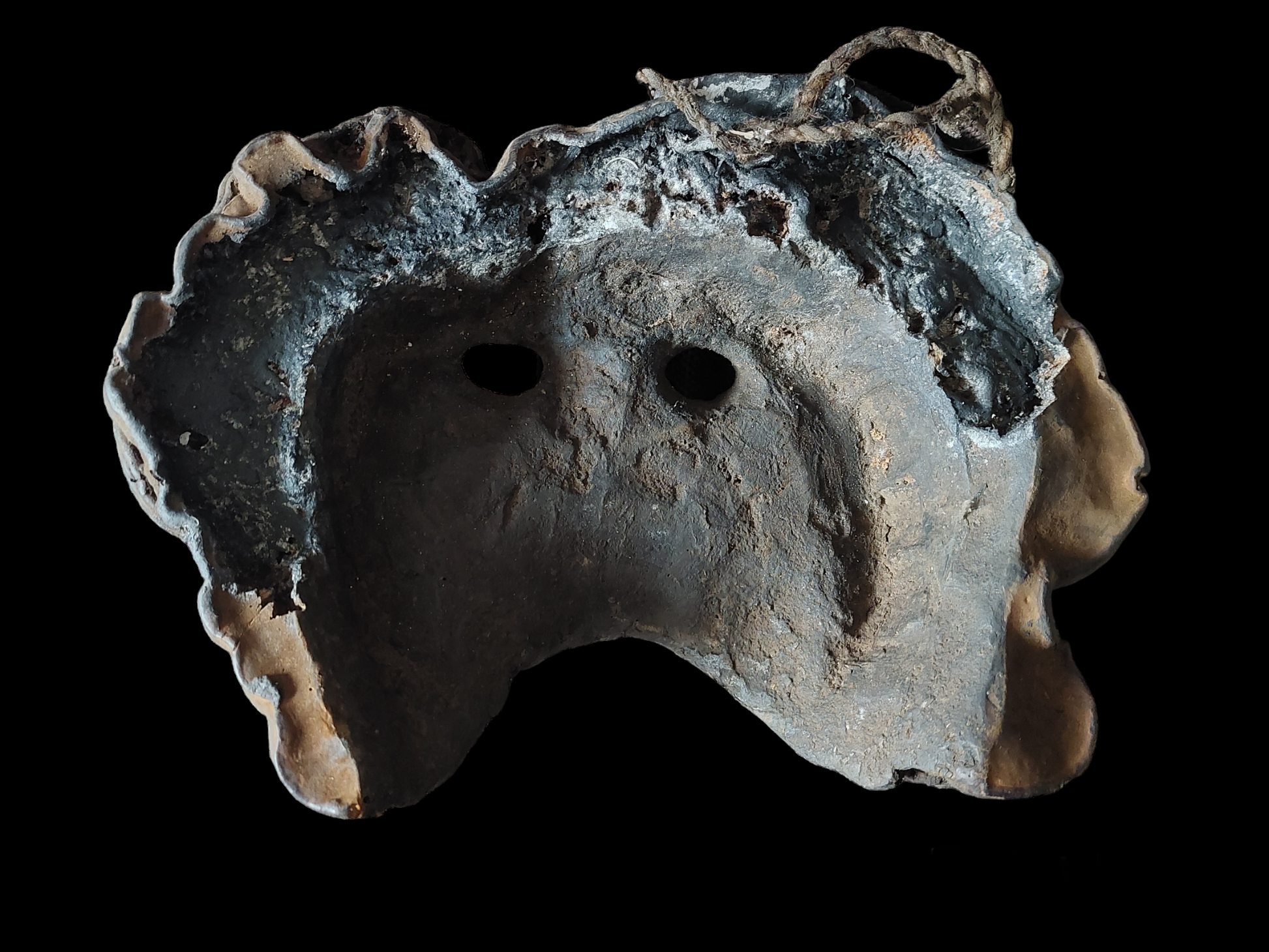 This item is a particularly beautiful specimen of such a mask. It is, especially considering its age and of course fragile nature, in excellent condition. It has a beautiful, balanced shape in which the natural structure of the funghi can still be very well recognised. This mask is quite a large one; it is approximately 32 centimeters wide and 22 centimeters high.