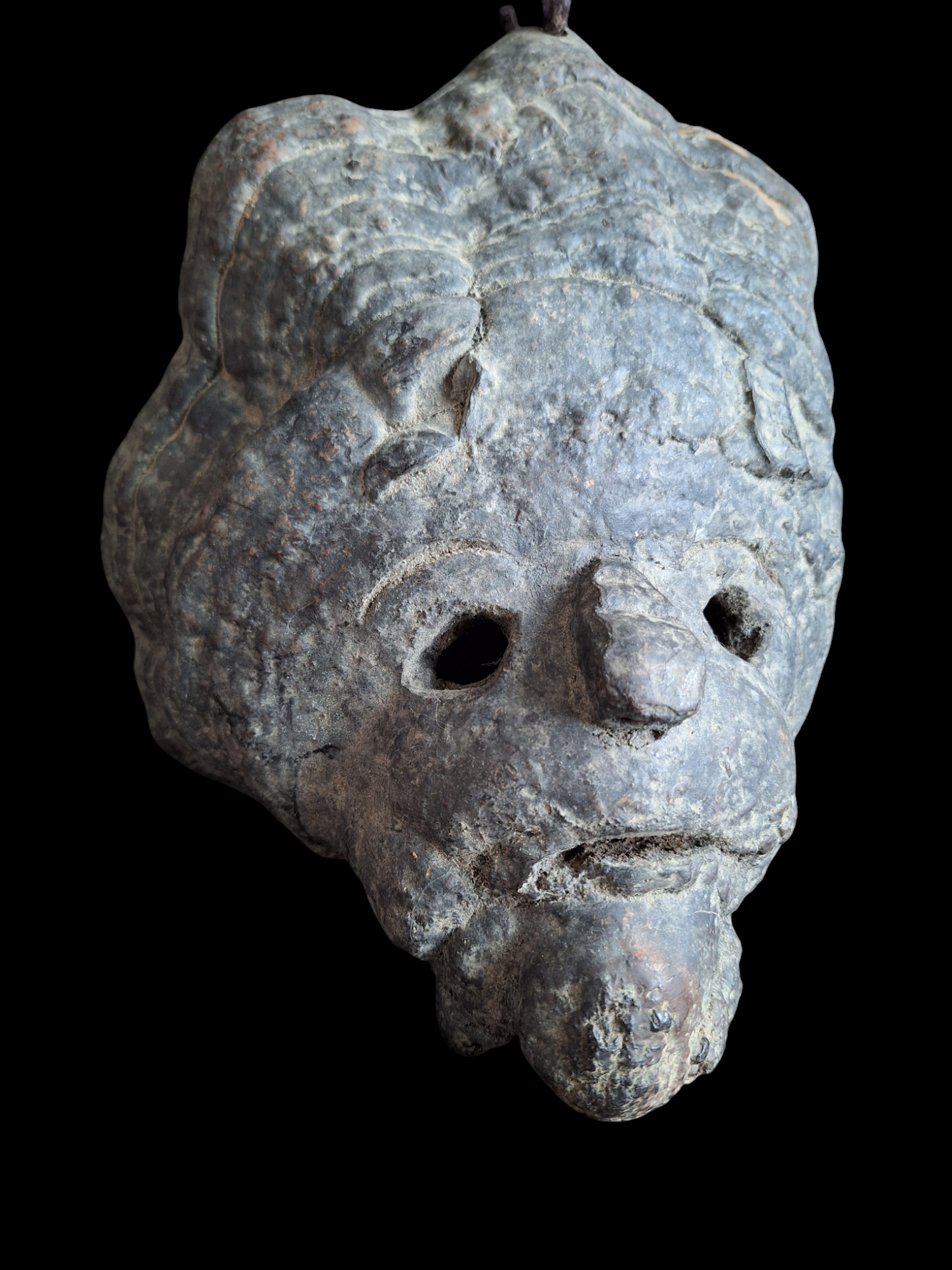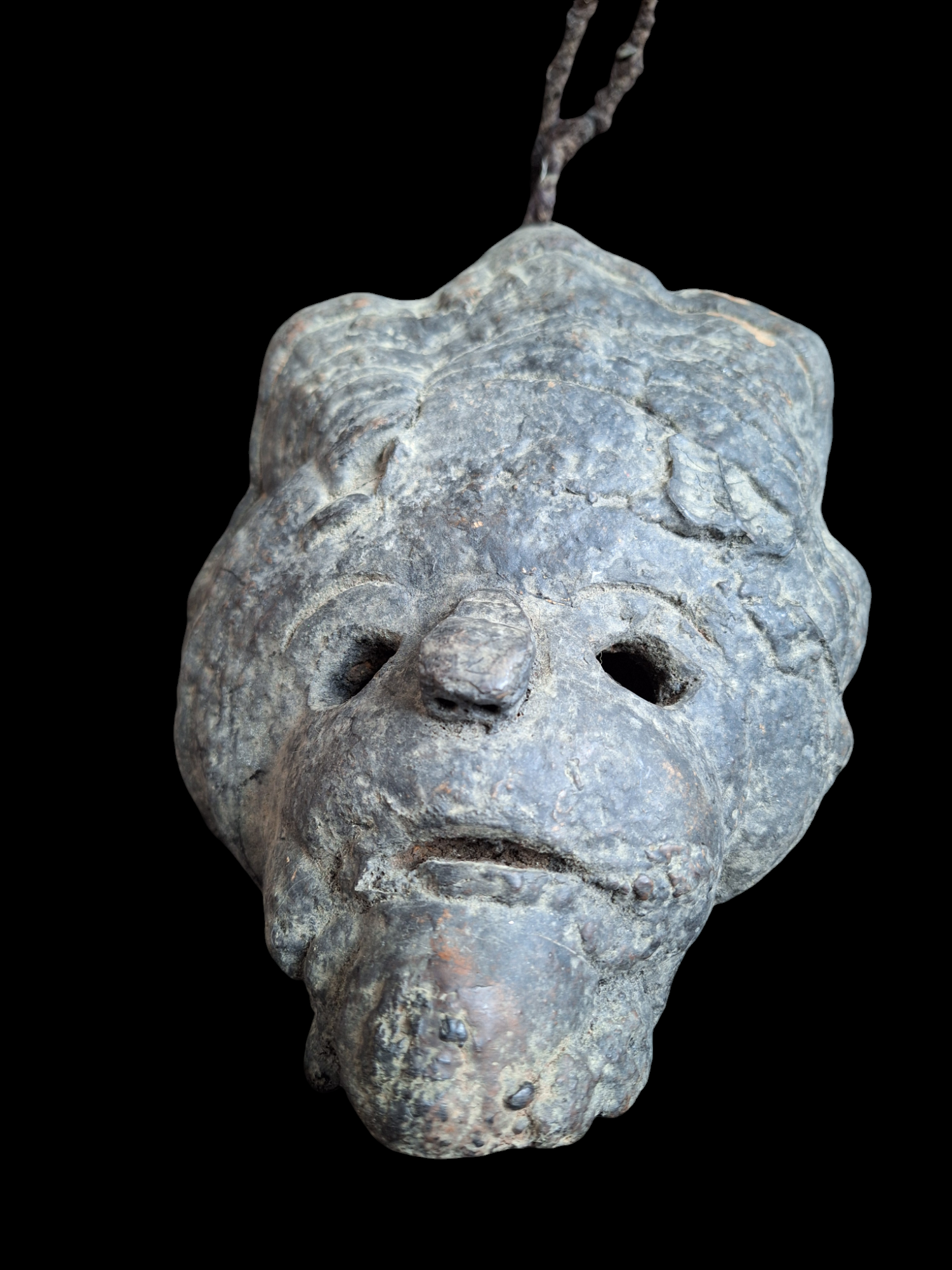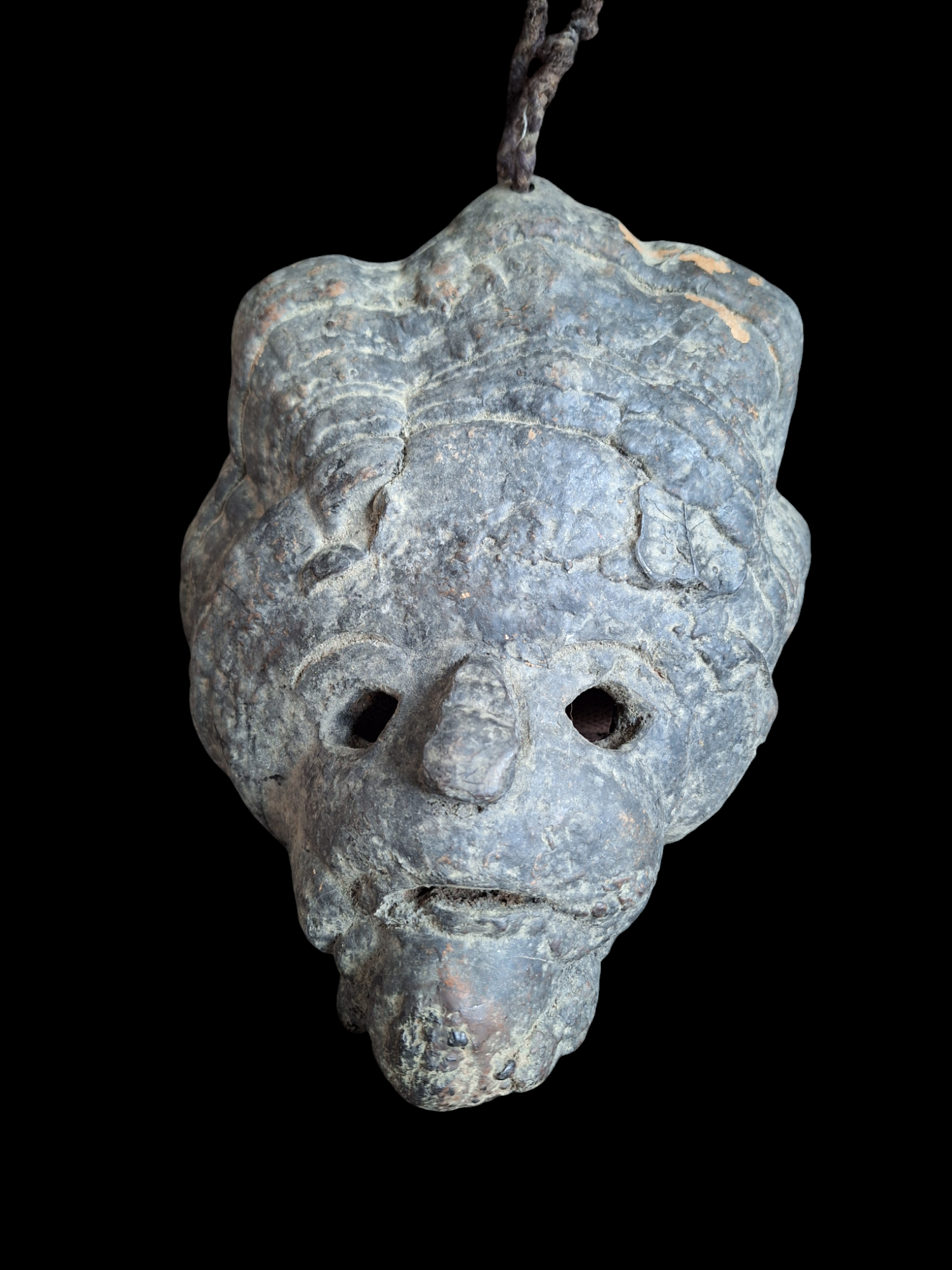 Masks like this are used for protection; they are hung in houses near doors or windows to protect the house and family against malevolent spirits and diseases. They are the houses of benevolent spirits such as the family's ancestors and are regularly fed with offerings of ghee or wodka and the smoke of incense.