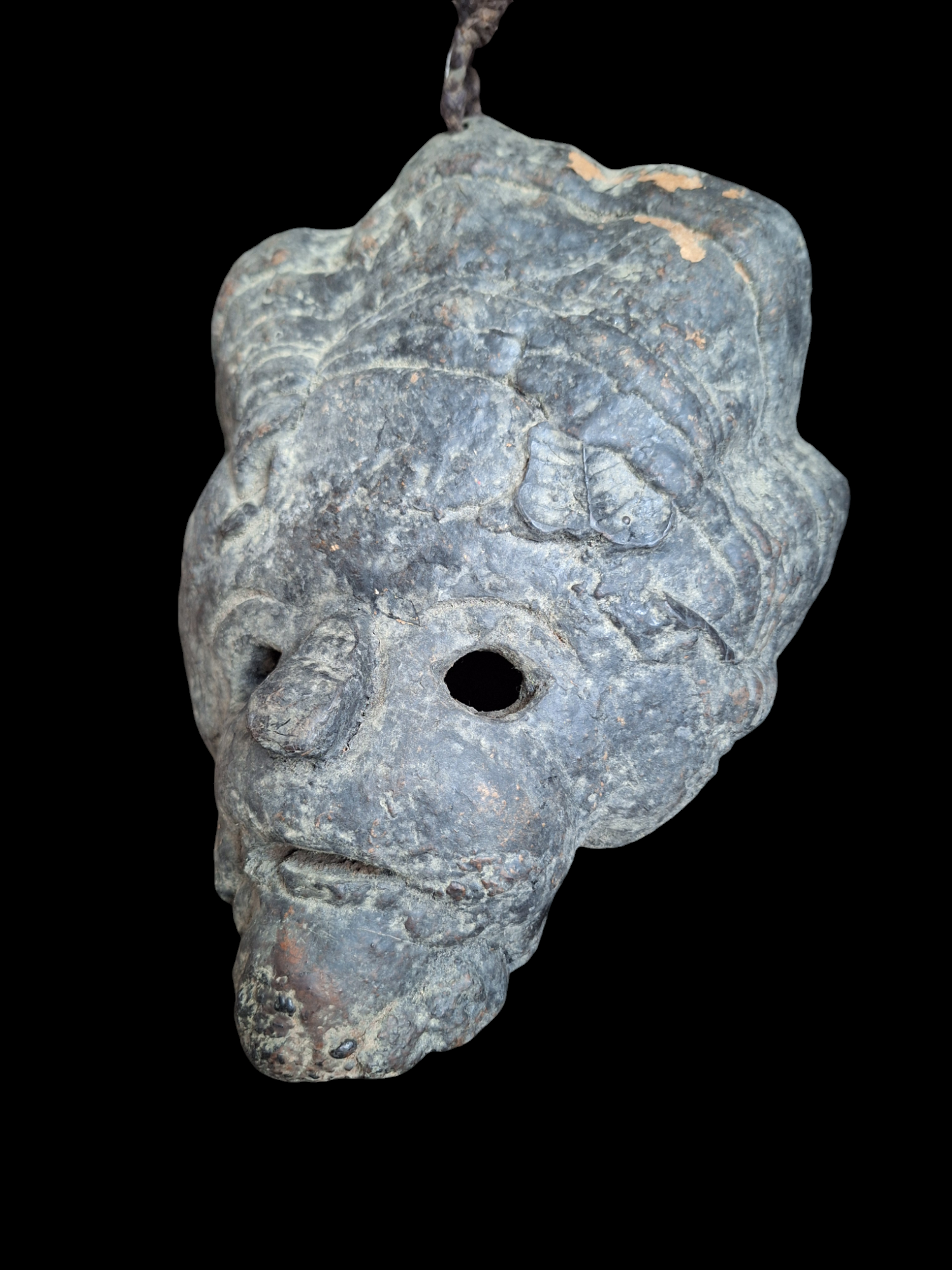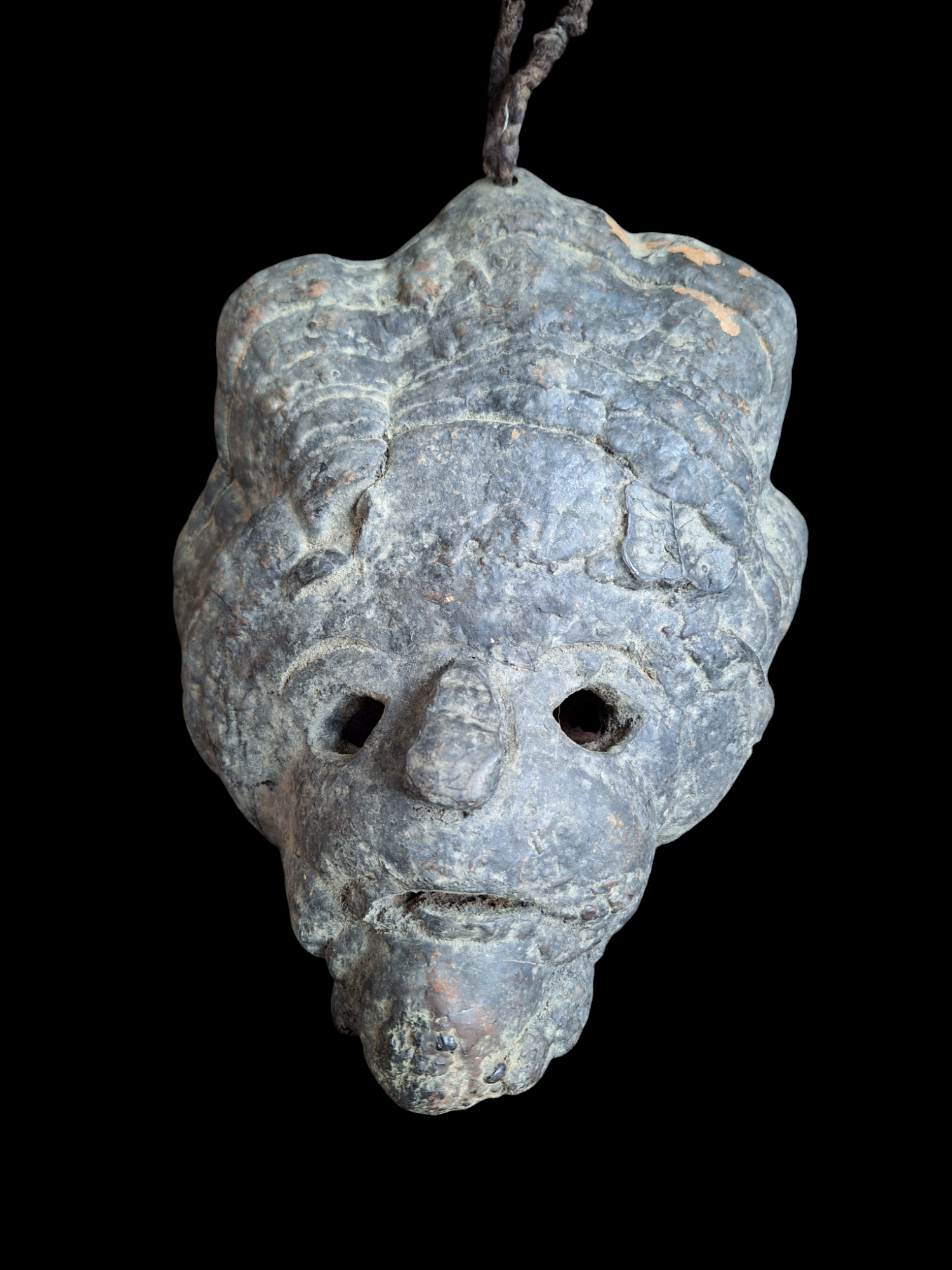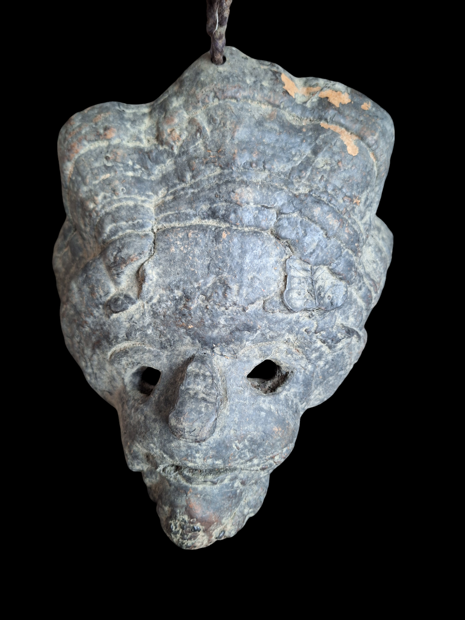 Masks like this are used for protection; they are hung in houses near doors or windows to protect the house and family against malevolent spirits and diseases. They are the houses of benevolent spirits such as the family's ancestors and are regularly fed with offerings of ghee or wodka and the smoke of incense.
