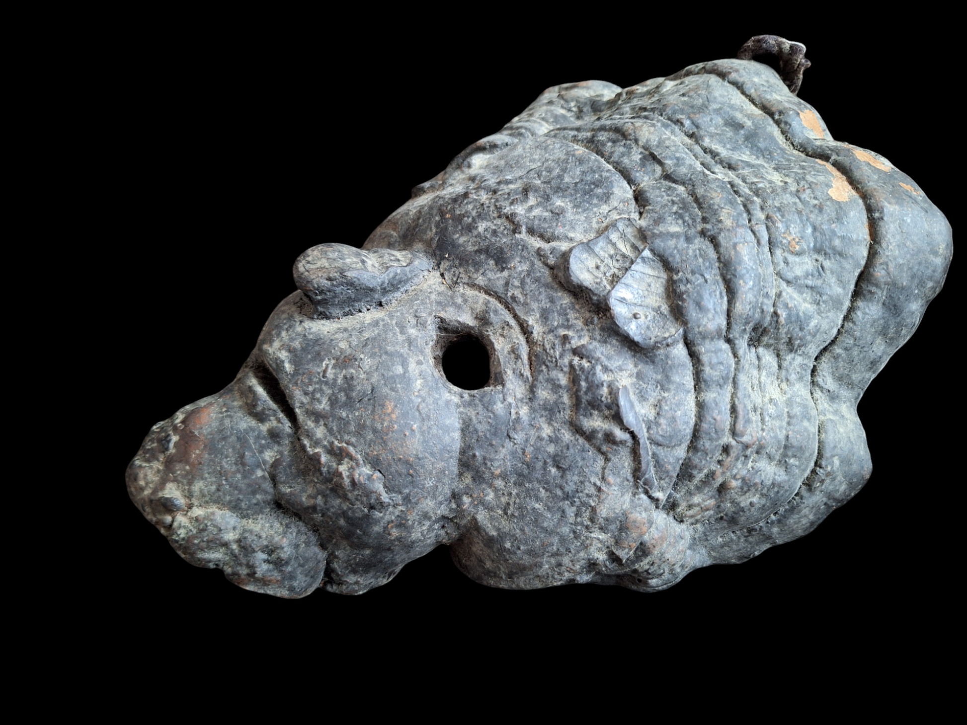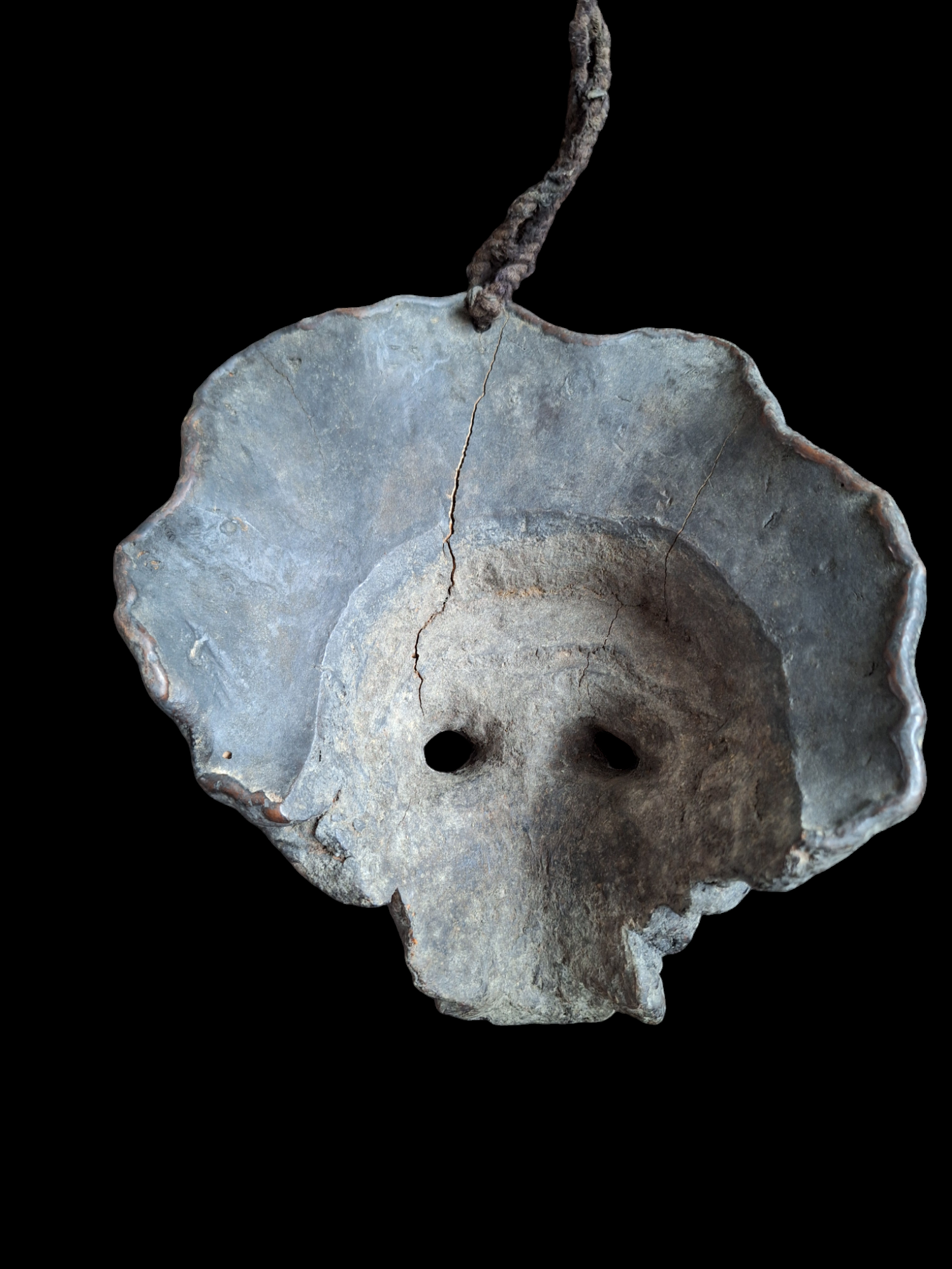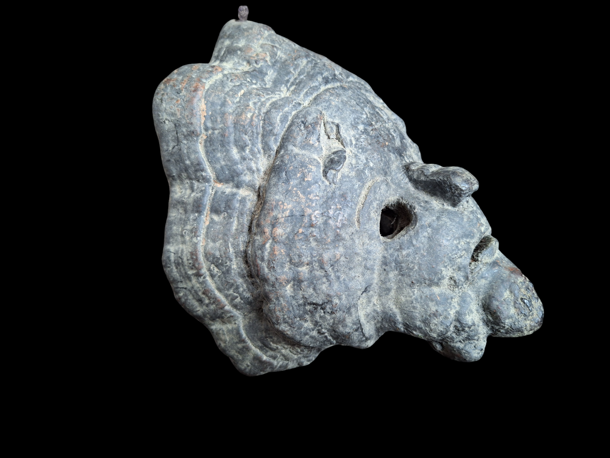 This item is a particularly beautiful specimen of such a mask. It is, especially considering its age and of course fragile nature, in excellent condition. It has a beautiful, balanced shape in which the natural structure of the funghi can still be very well recognised. This mask is approximately 22 centimeters wide and 24 centimeters high.